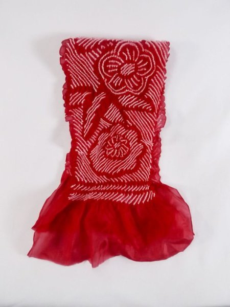 M0608XF 帯揚げ シルク(正絹) 赤色, 梅 【中古】 【USED】 【リサイクル】 (Grade A)