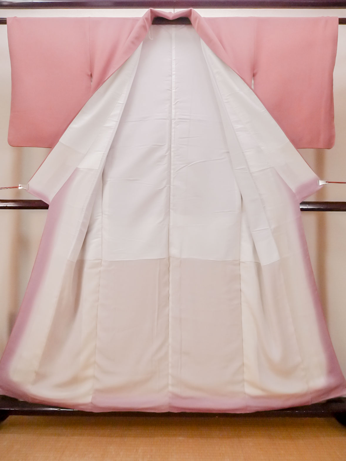 N0130S 女性用 色無地 シルク(正絹) 鮮やか 灰色がかった 桃色, 【中古】 【USED】 【リサイクル】 ★★☆☆☆