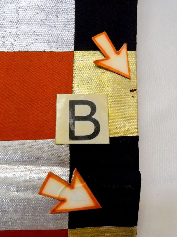 N0227E 袋帯 女性用着物 シルク(正絹) マルチカラー チェック柄 【中古】 【USED】 【リサイクル】 ★★☆☆☆ [N0227E]