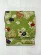 N0227P 袋帯 女性用着物 シルク(正絹) 緑色 花 【中古】 【USED】 【リサイクル】 ★☆☆☆☆ [N0227P]