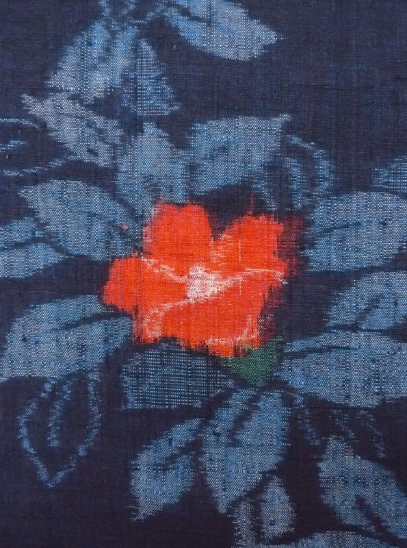 N0430C Mint 女性用 紬 シルク(正絹) 藍, 椿 【中古】 【USED】 【リサイクル】 ★★★★☆ [N0430C]
