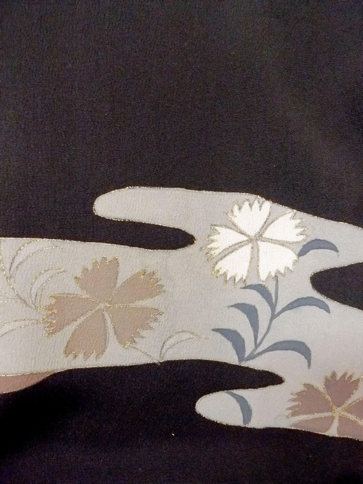 M1228A 女性用 留袖 シルク(正絹) 黒, 菊 【中古】 【USED】 【リサイクル】 ★★☆☆☆