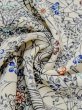 M1228T 女性用 小紋 化繊 白, 菊 【中古】 【USED】 【リサイクル】 ★★☆☆☆ [M1228T]