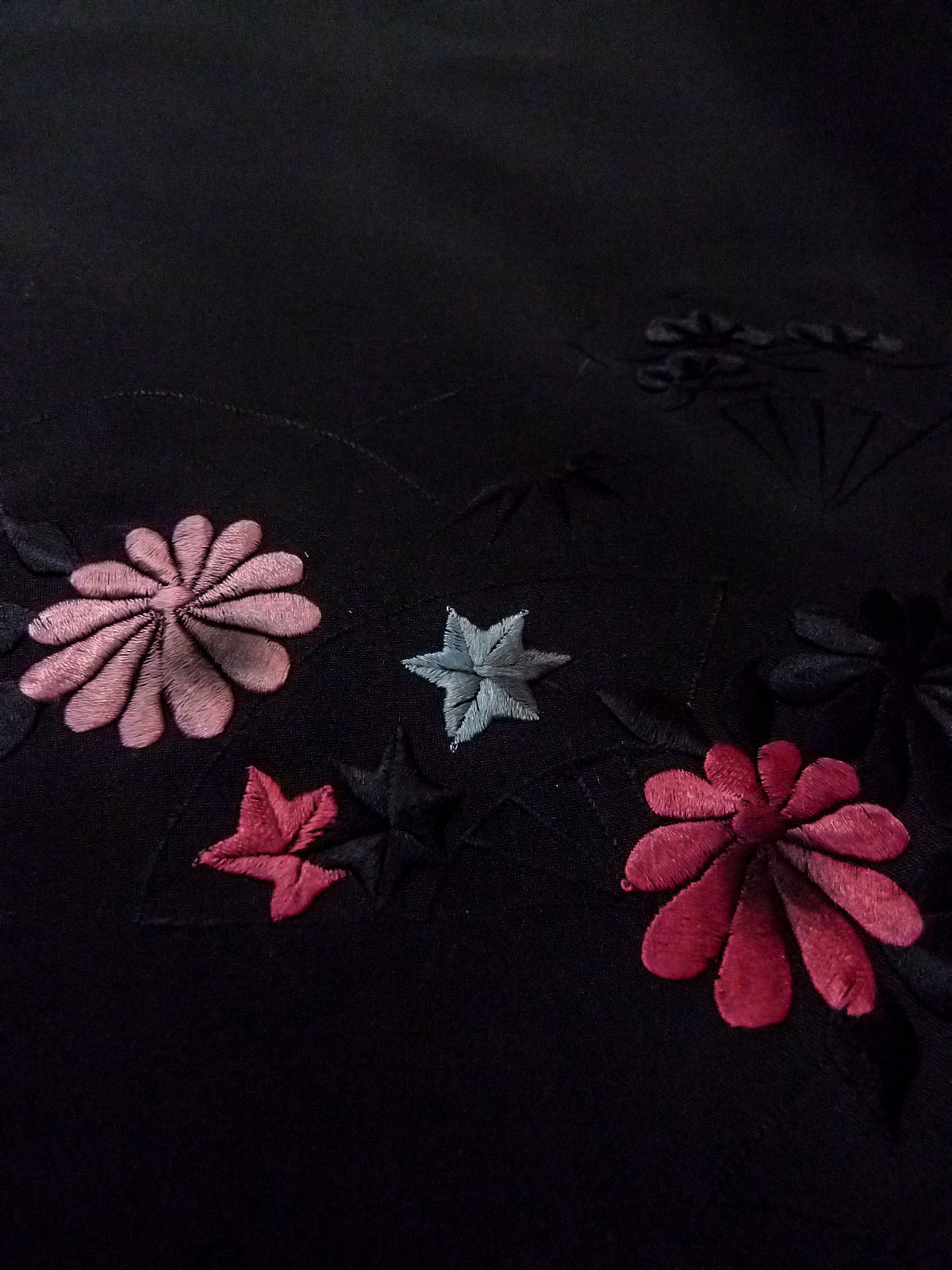 N0920O Mint 女性用 羽織 化繊 黒, 菊 【中古】 【USED】 【リサイクル】 ★★★★☆ [N0920O]