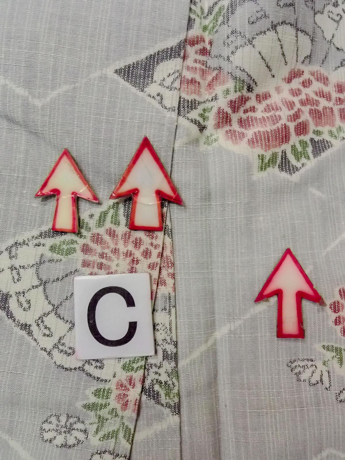 ![]() | 袖から袖 : | 51.1" | 130cm (裄:65cm / 1 尺 7 寸 2 分) | |