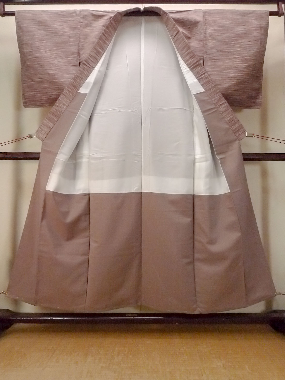 N1008B 女性用紬 シルク(正絹) 茶色, 線 【中古】【USED】【リサイクル】 ★★★★☆【N1008B】 [N1008B]