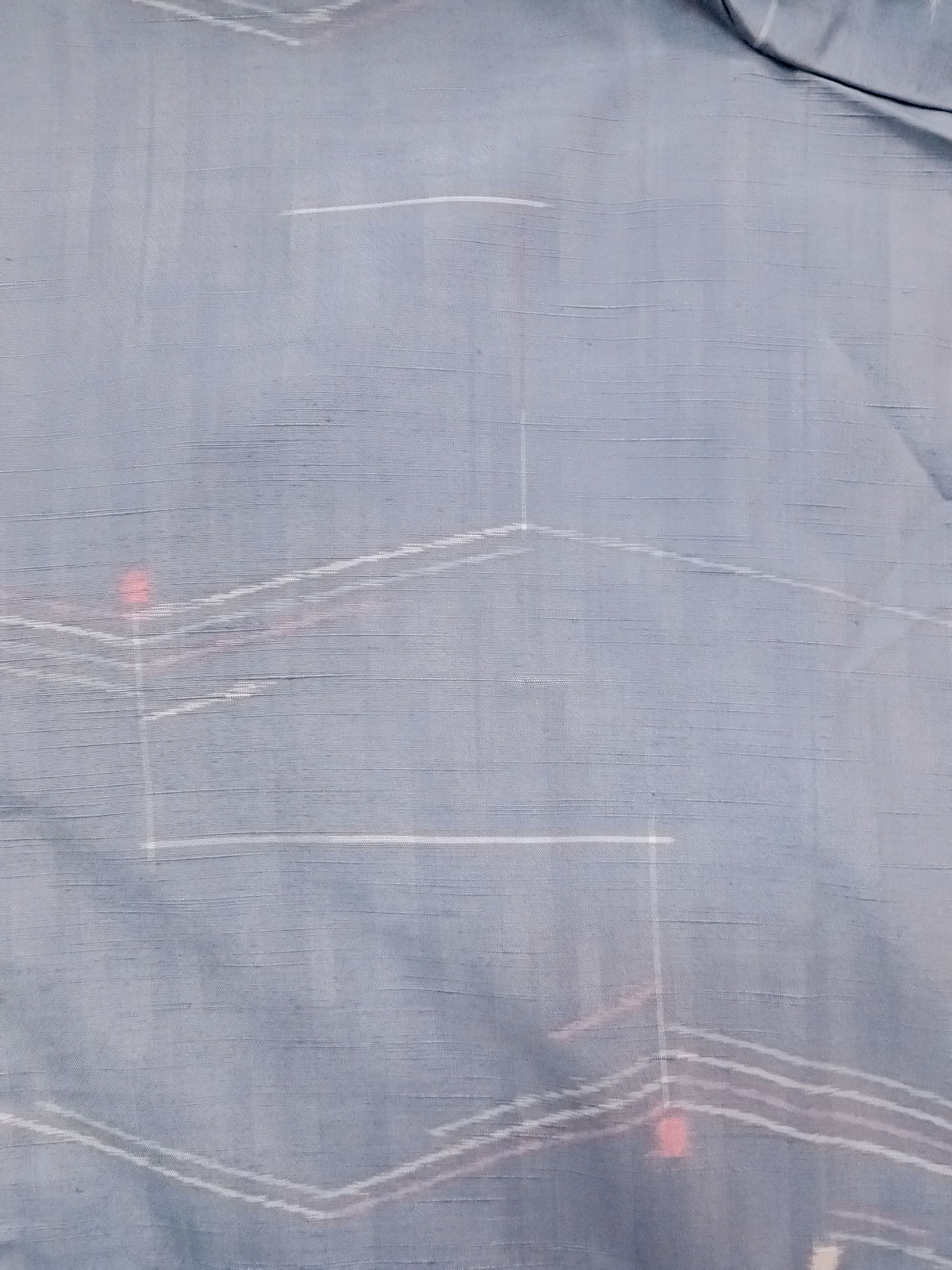 N1210Y 女性用紬 シルク(正絹) 淡い灰色がかった水色, 幾何学模様 【中古】【USED】【リサイクル】 ★★★☆☆【N1210Y】