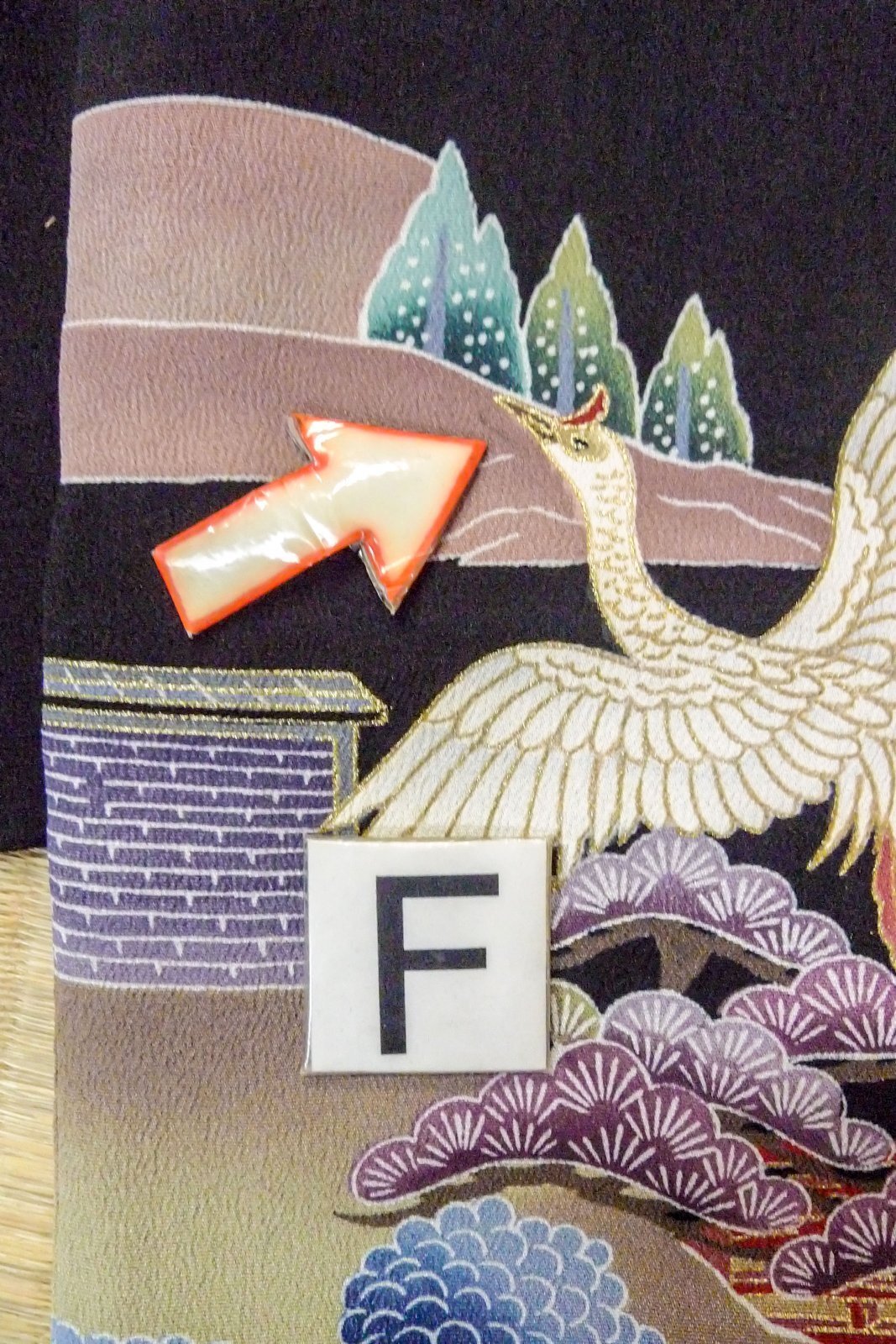 装飾 : 金ペイント、 金巻刺繍 手縫い