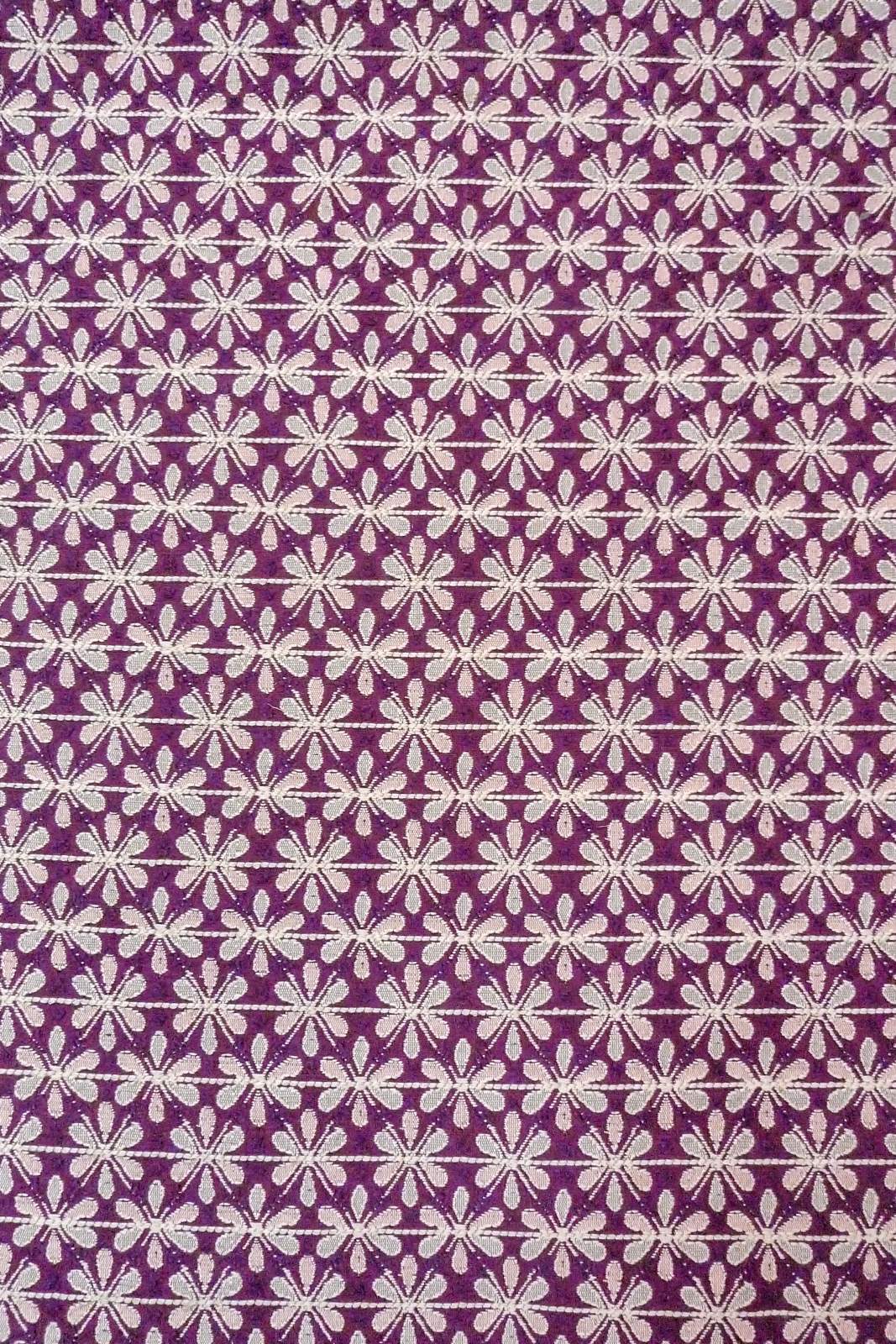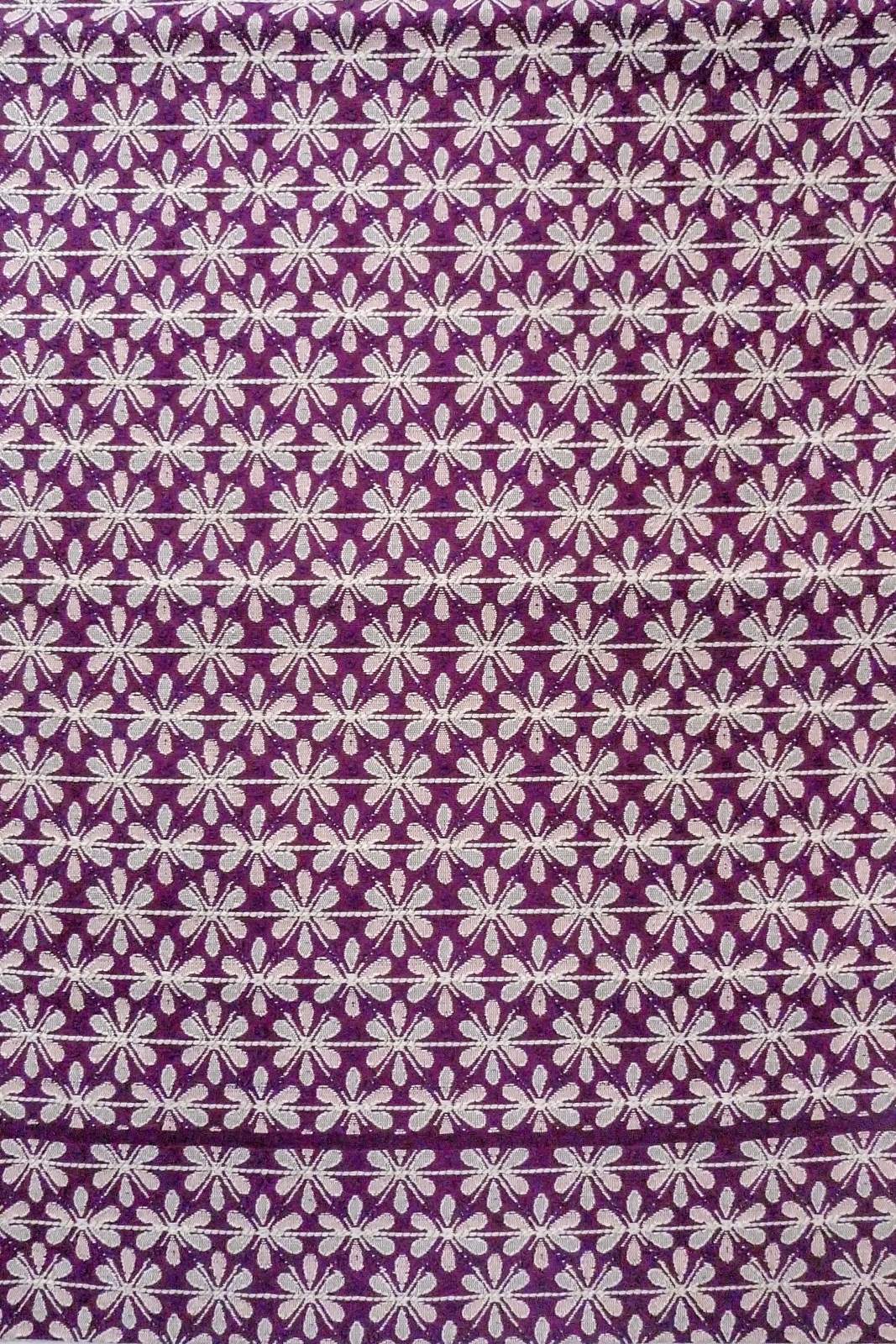八寸(袋名古屋)帯 シルク(正絹) 紫色, 花 【中古】 【USED】 【リサイクル】 (Grade A)
