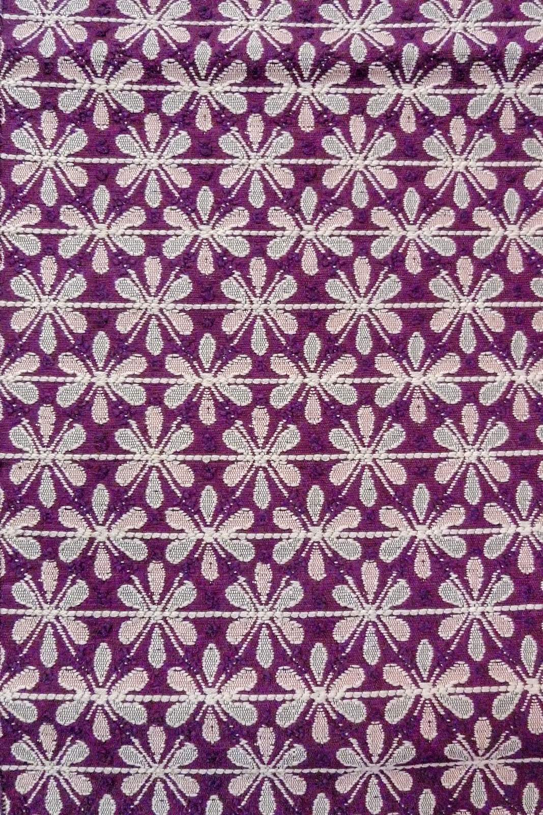 - > O0606T 八寸(袋名古屋)帯 女性用着物 シルク(正絹) 紫色 花 【中古】 【USED】 【リサイクル】 ★★★★☆