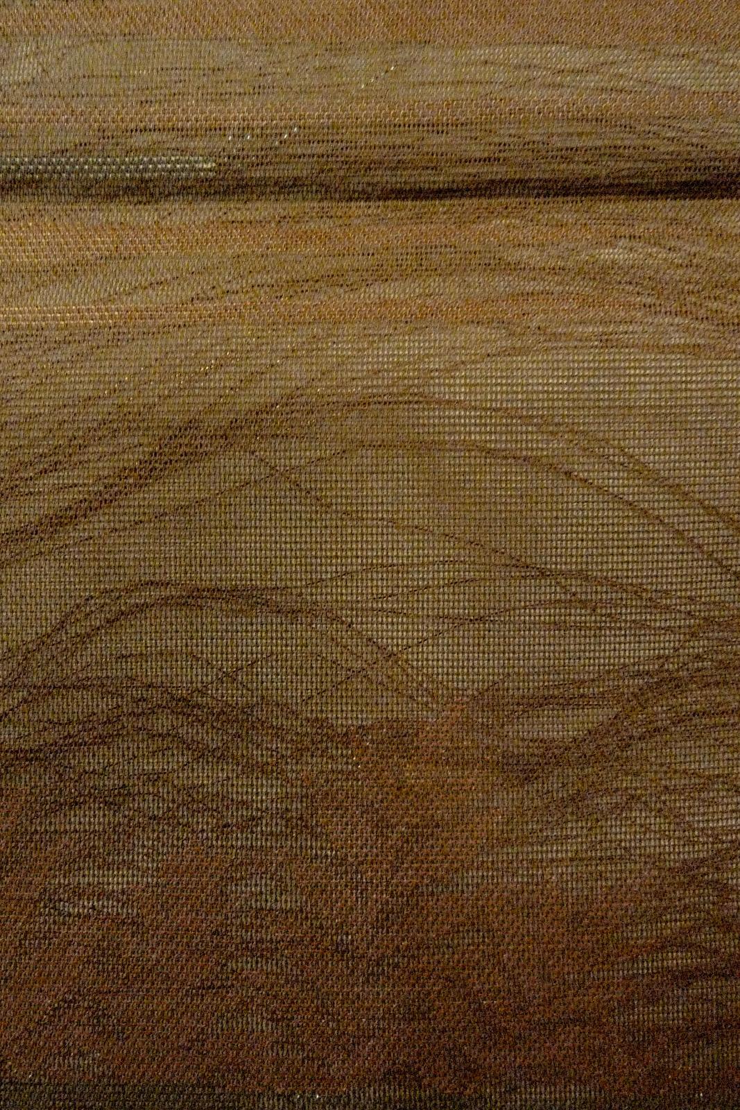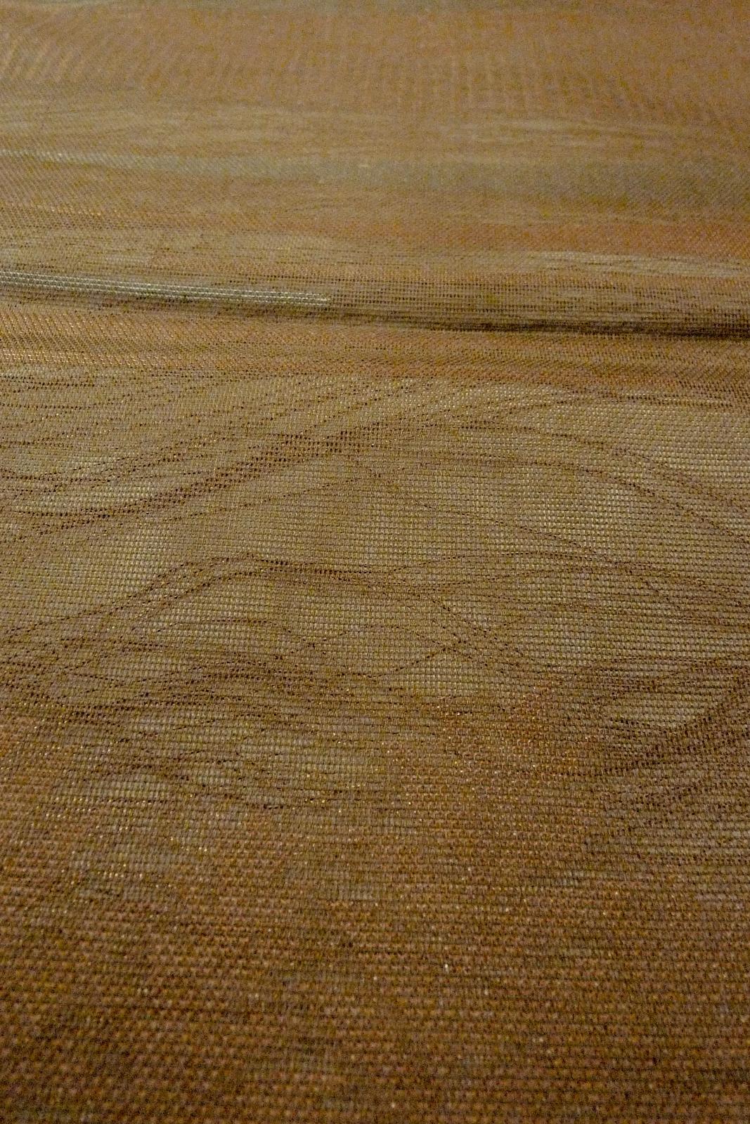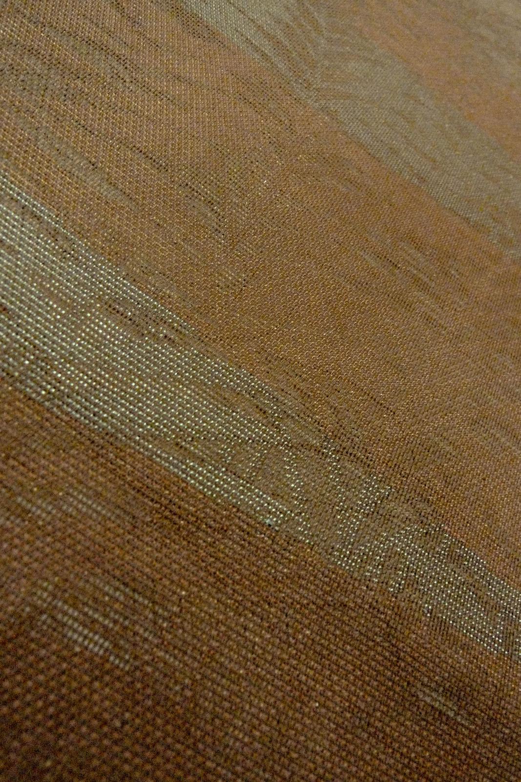 O0607B 袋帯 女性用着物 麻 深い 茶色 葉 【中古】 【USED】 【リサイクル】 ★★☆☆☆ [O0607B]