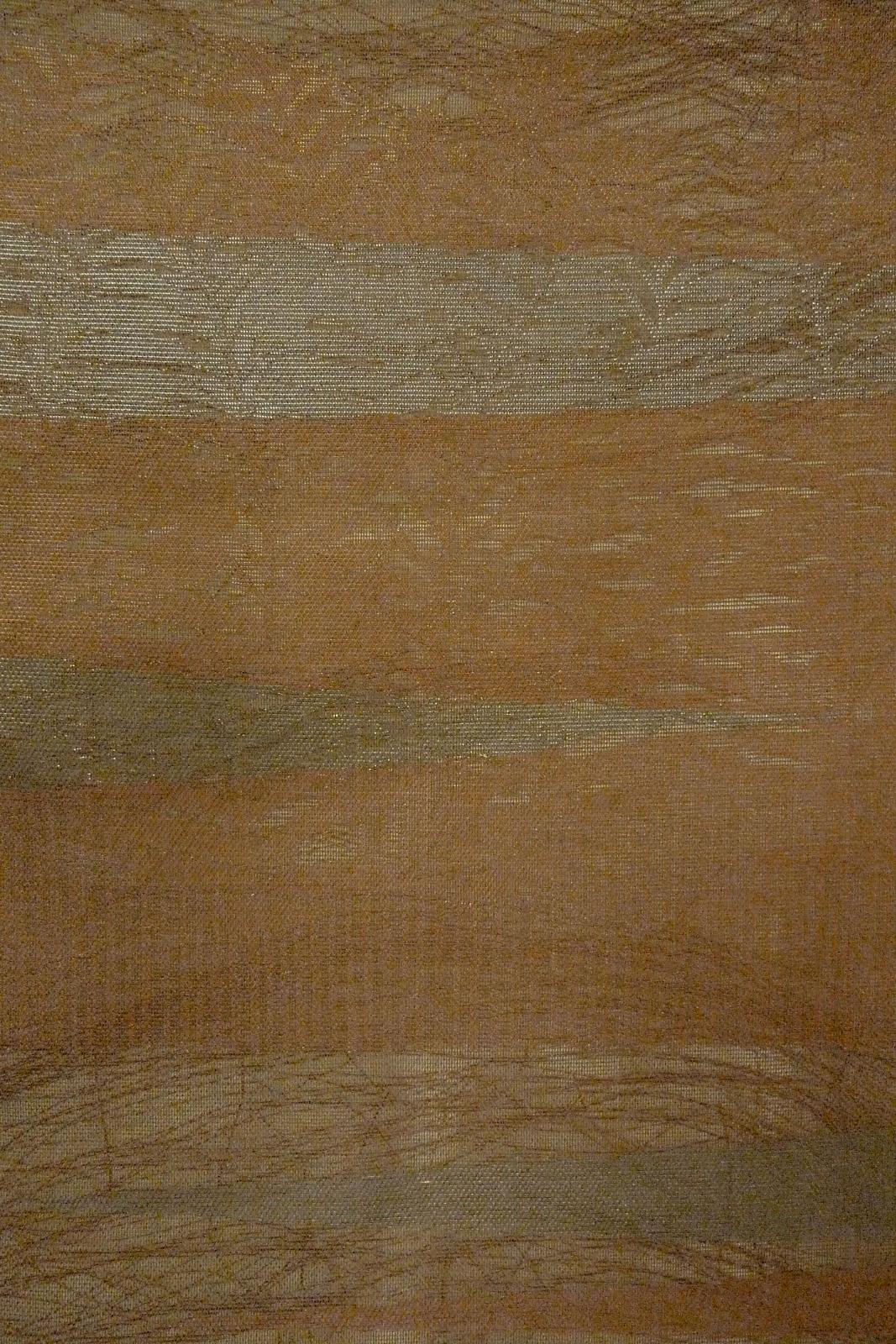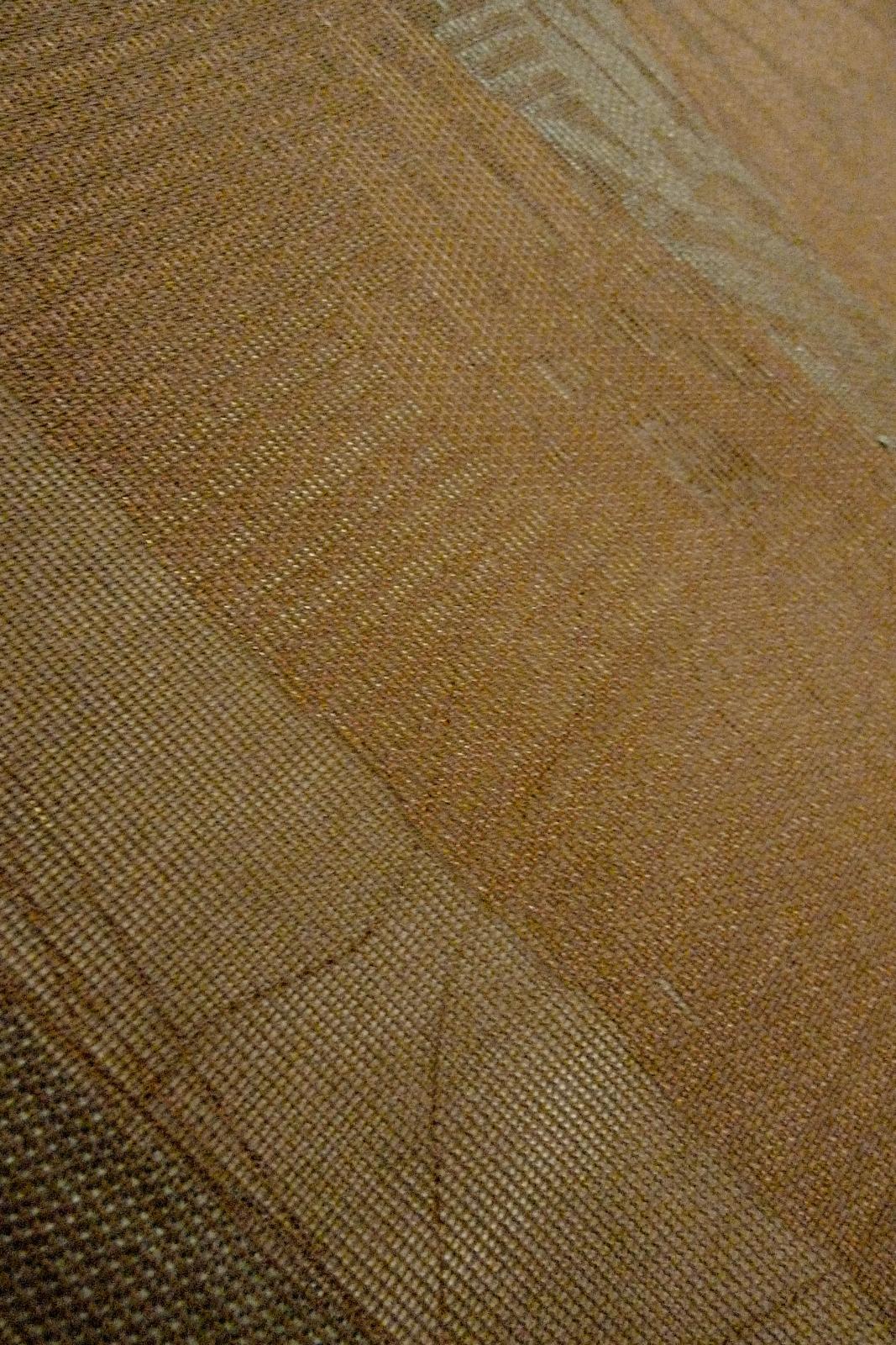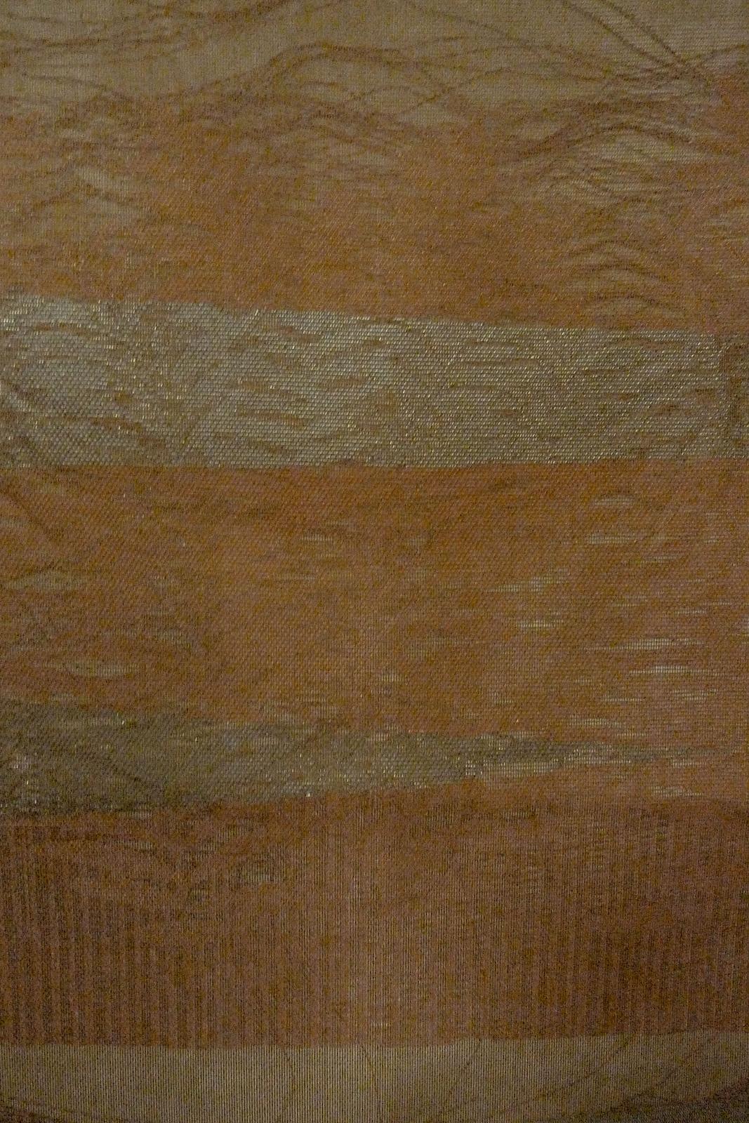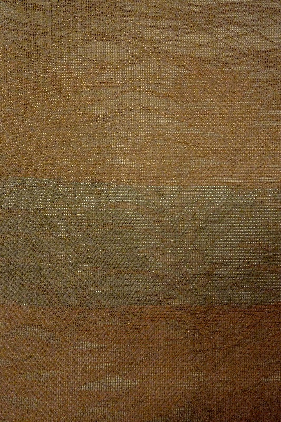 O0607B 袋帯 女性用着物 麻 深い 茶色 葉 【中古】 【USED】 【リサイクル】 ★★☆☆☆ [O0607B]