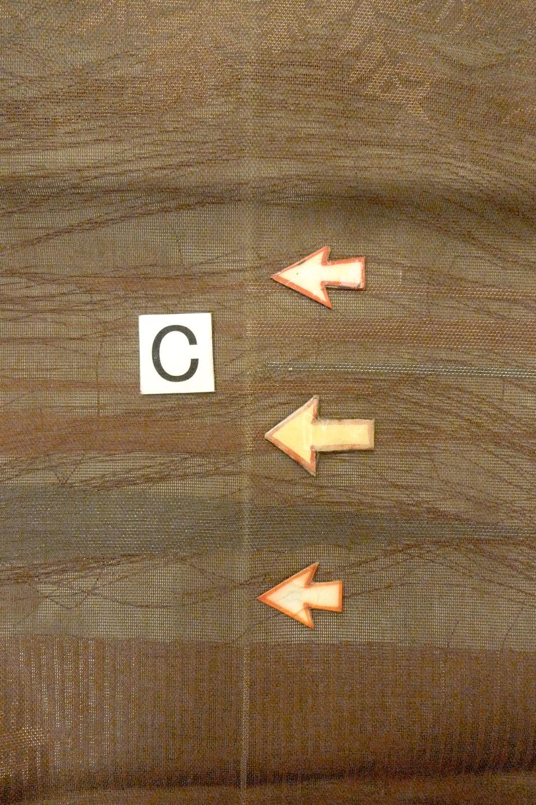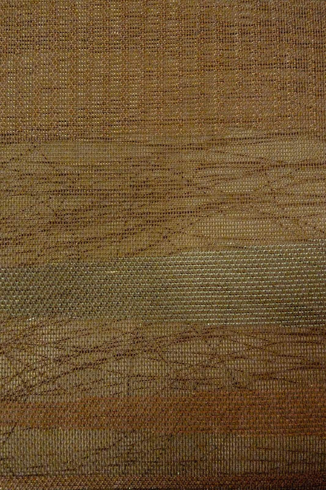 袋帯 ほつれ有り 麻 深い 茶色, 葉 【中古】 【USED】 【リサイクル】 (Grade C)