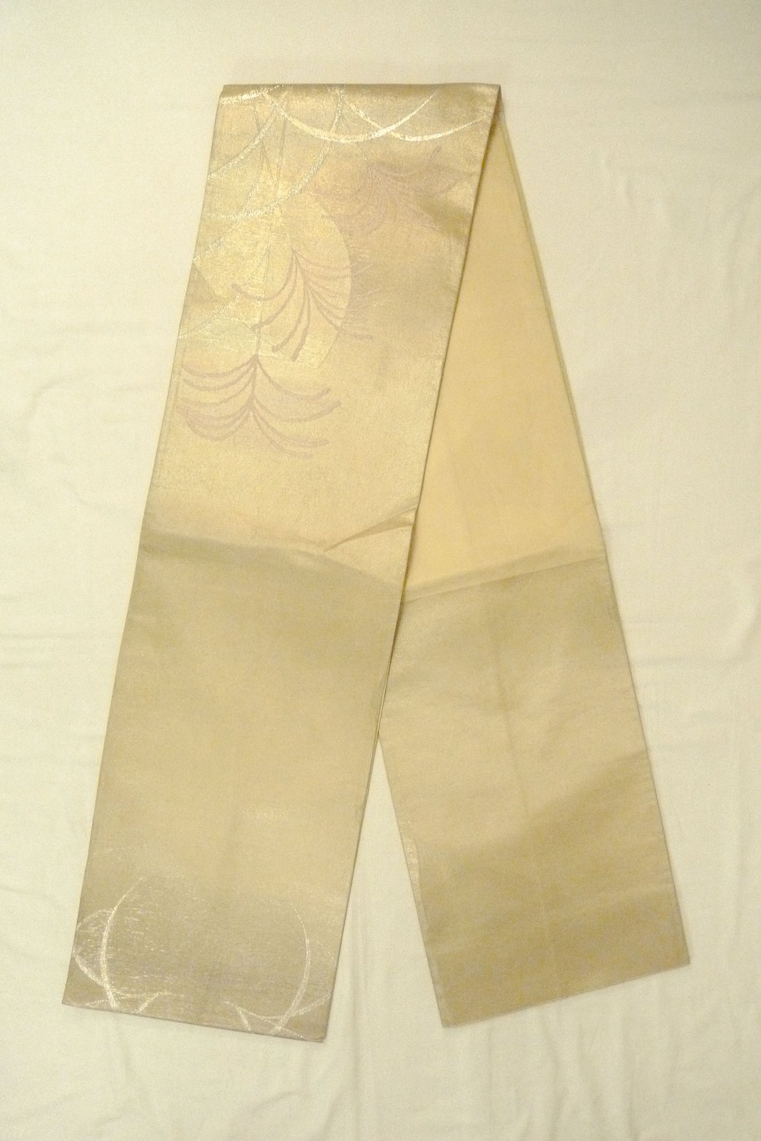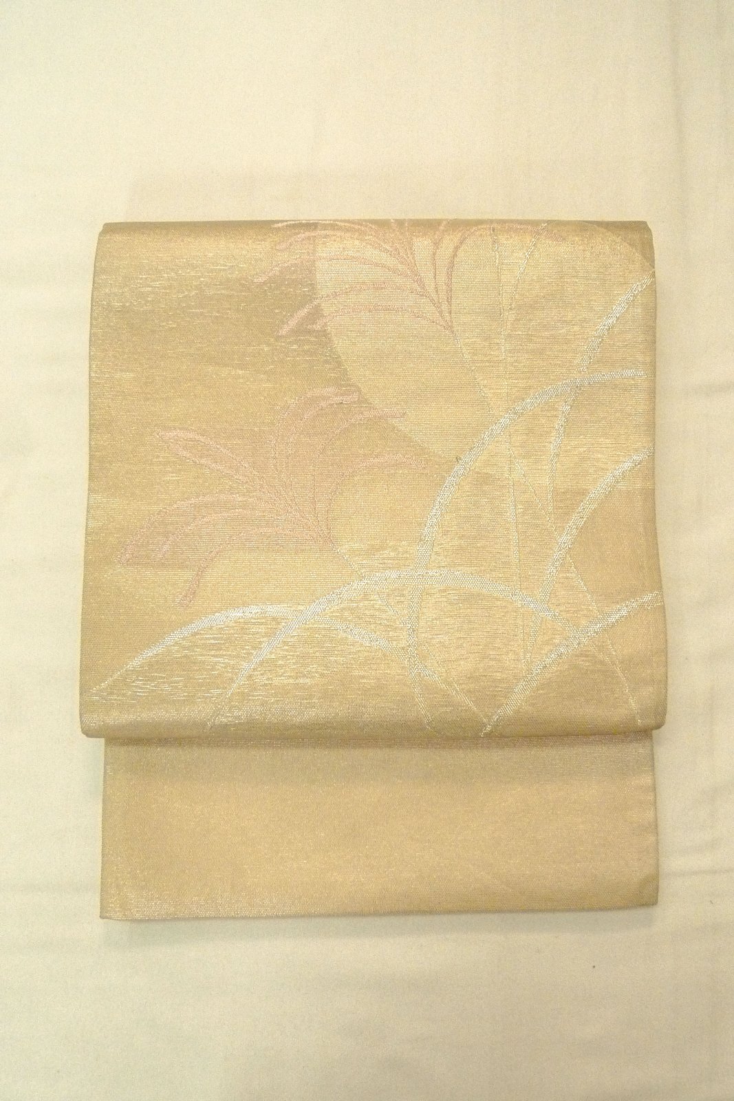 O0607C 袋帯 女性用着物 シルク(正絹) 光沢のある アイボリー 【中古】 【USED】 【リサイクル】 ★★★☆☆ [O0607C]