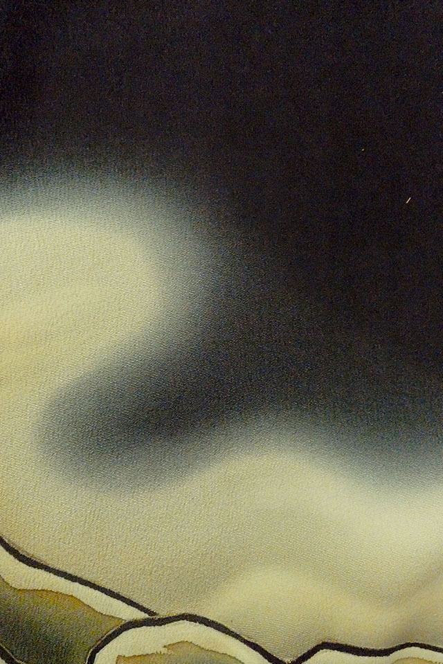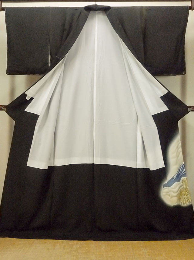 O0624E"女性用留袖 シルク(正絹) 黒, 雲 【中古】【USED】【リサイクル】 ★★☆☆☆【O0624E】