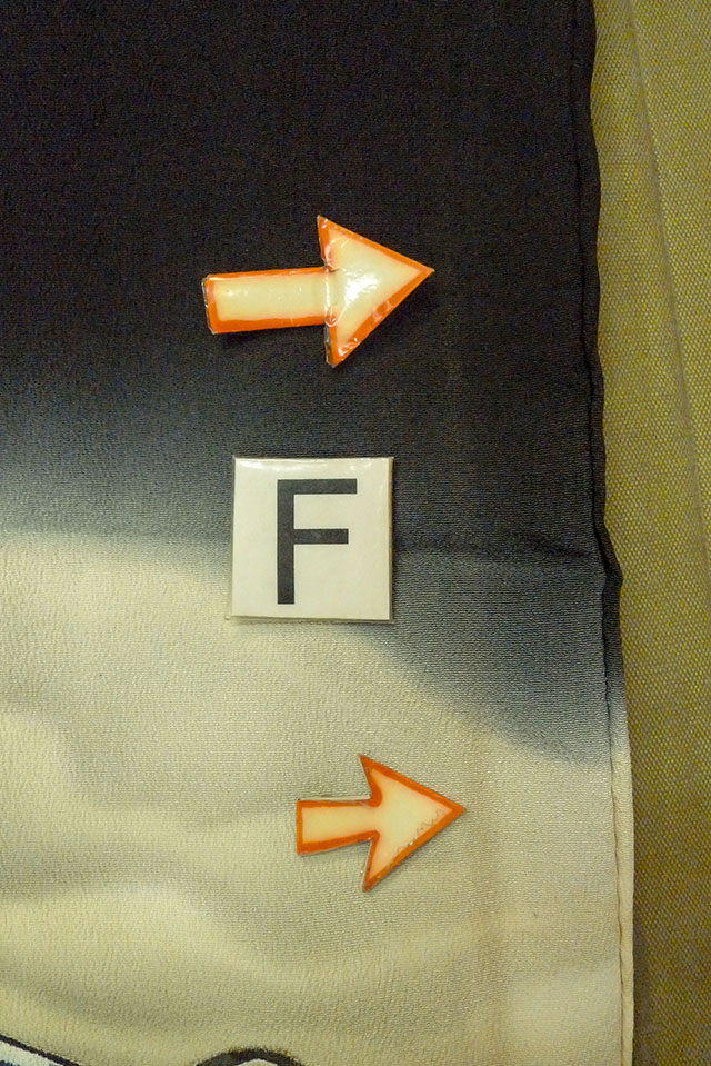 ![]() | 袖から袖 : | 51.5" | 131cm (裄:65.5cm / 1 尺 7 寸 3 分) | |