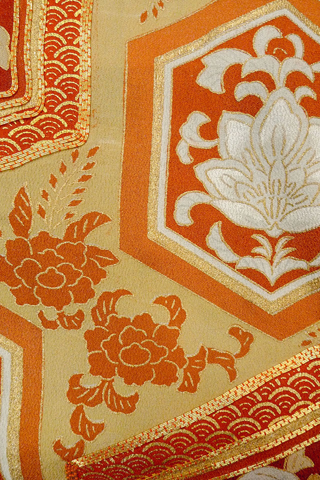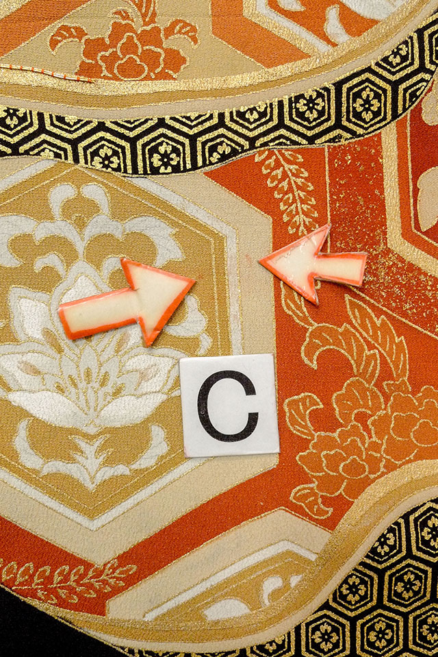 装飾 : 金ペイント、"金巻刺繍、"金箔"""手縫い