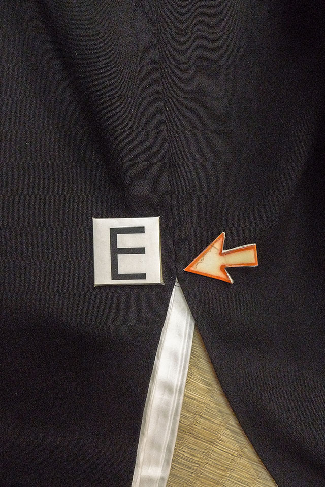 ![]() | 袖から袖 : | 52.3" | 133cm (裄:66.5cm / 1 尺 7 寸 5 分) | |