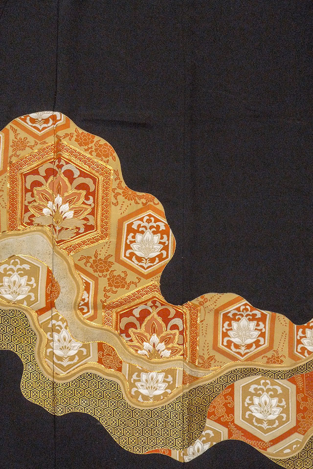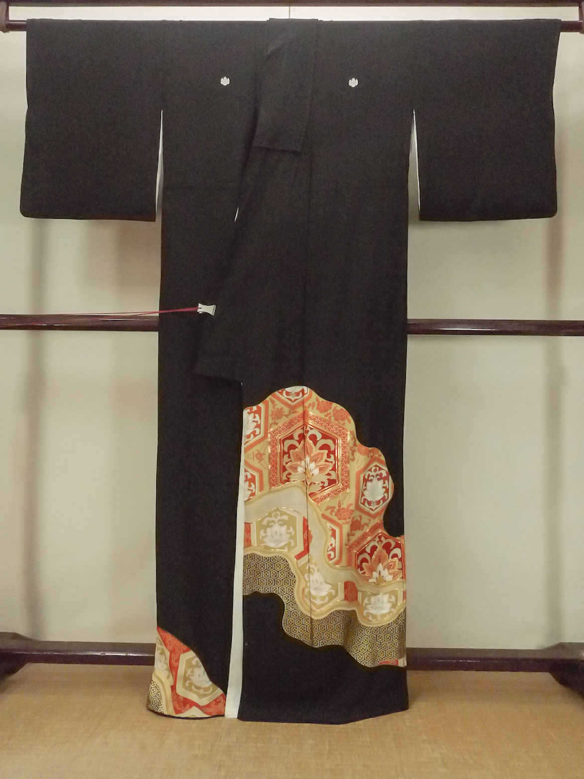 O0624G 女性用留袖 シルク(正絹) 黒, 唐花 【中古】【USED】【リサイクル】 ★☆☆☆☆【O0624G】 [O0624G]