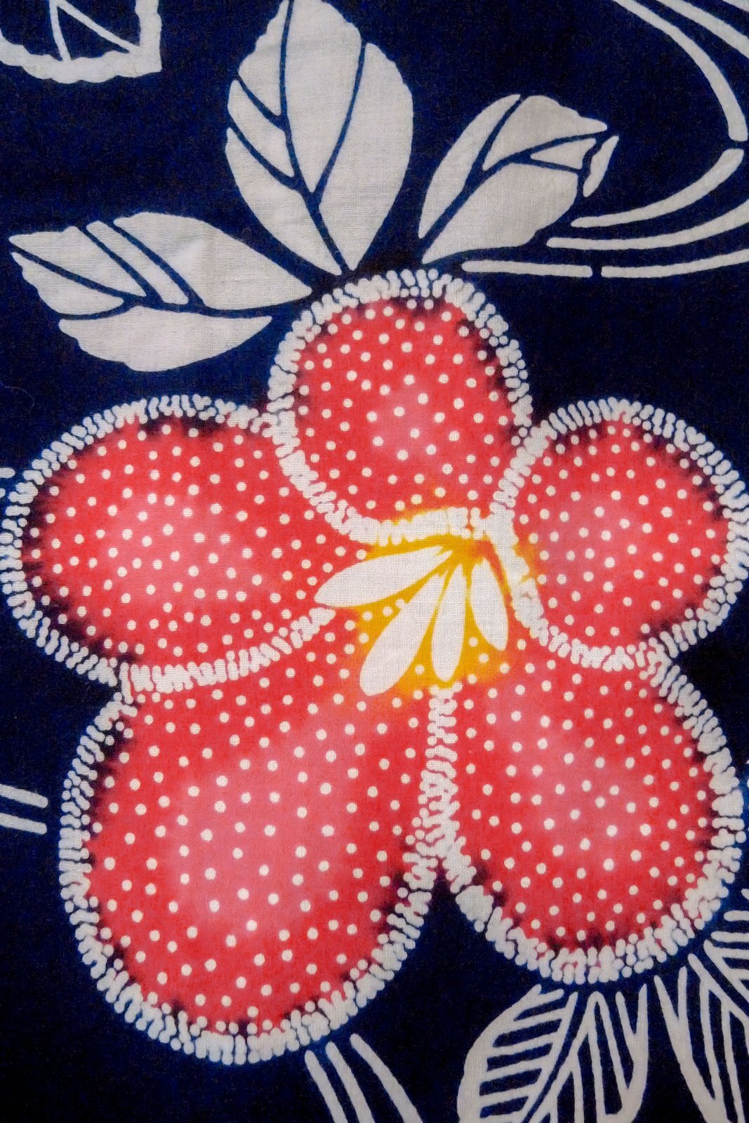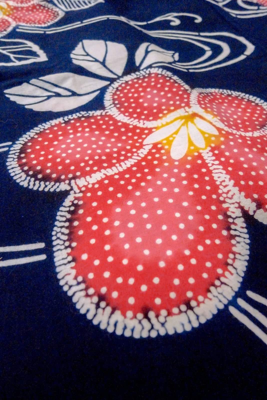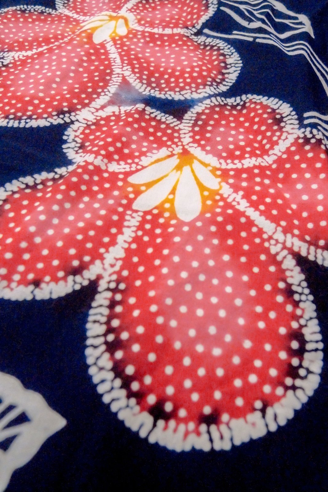 O0624Q 女性用注染浴衣 綿 藍, 花 【中古】【USED】【リサイクル】 ★☆☆☆☆【O0624Q】 [O0624Q]