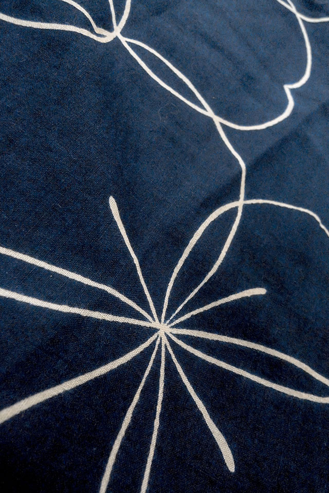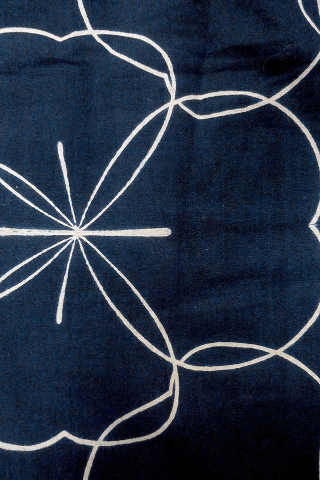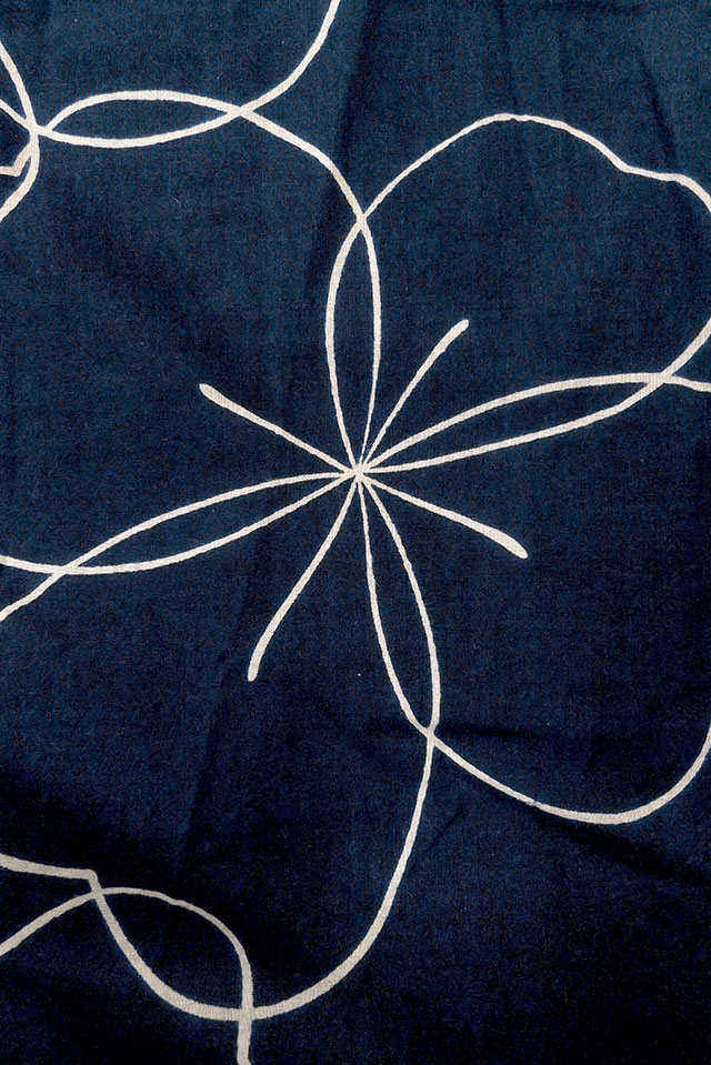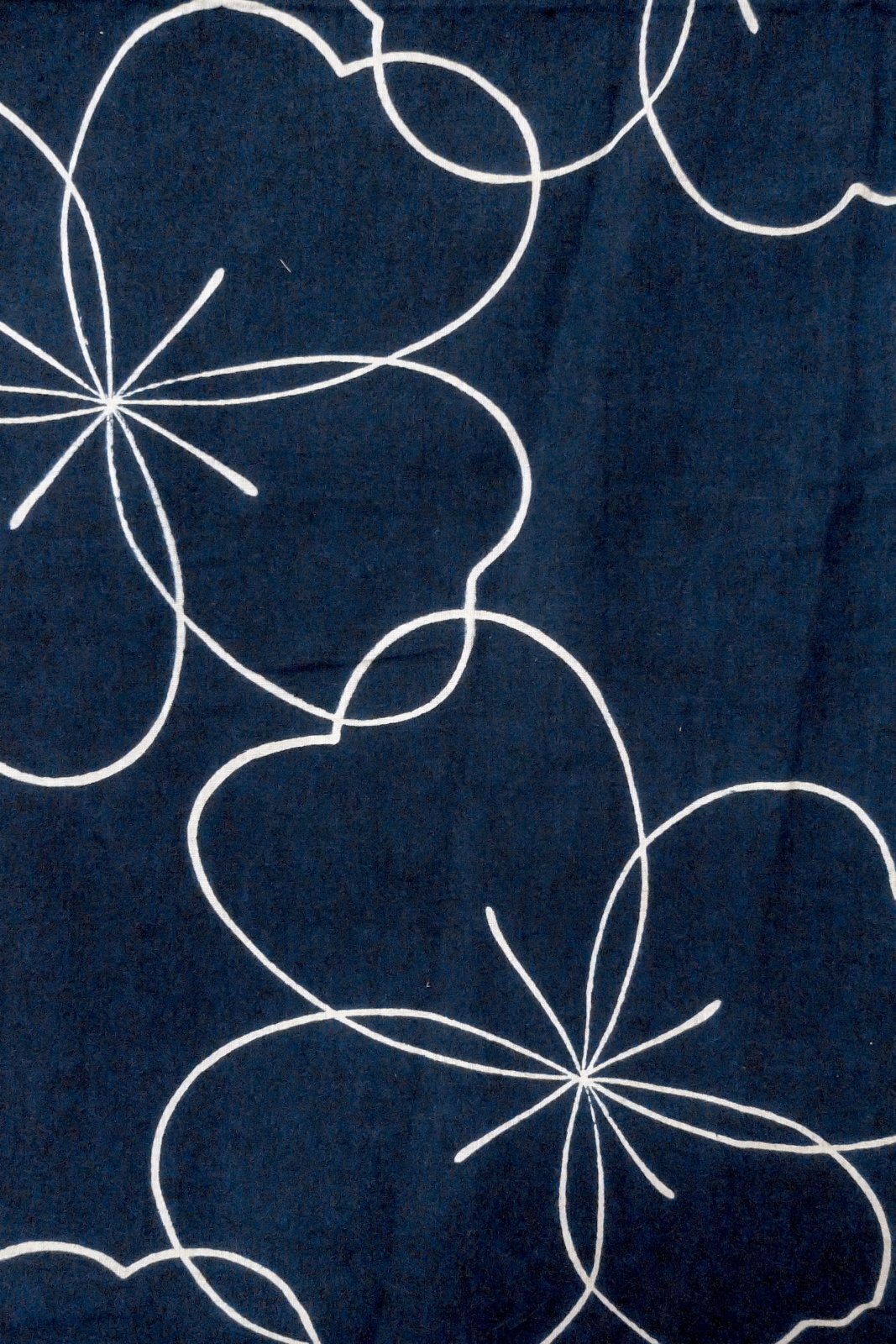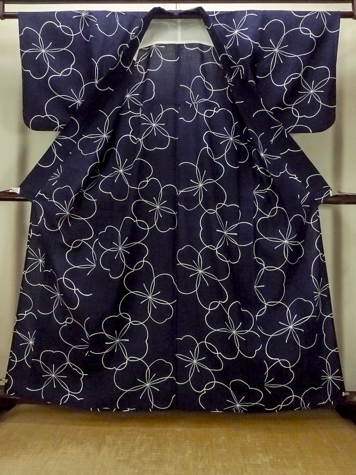 O0624U"女性用浴衣(日本製) 綿 深い藍, 花 【中古】【USED】【リサイクル】 ★★★☆☆【O0624U】
