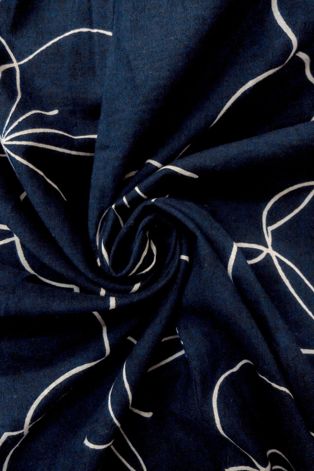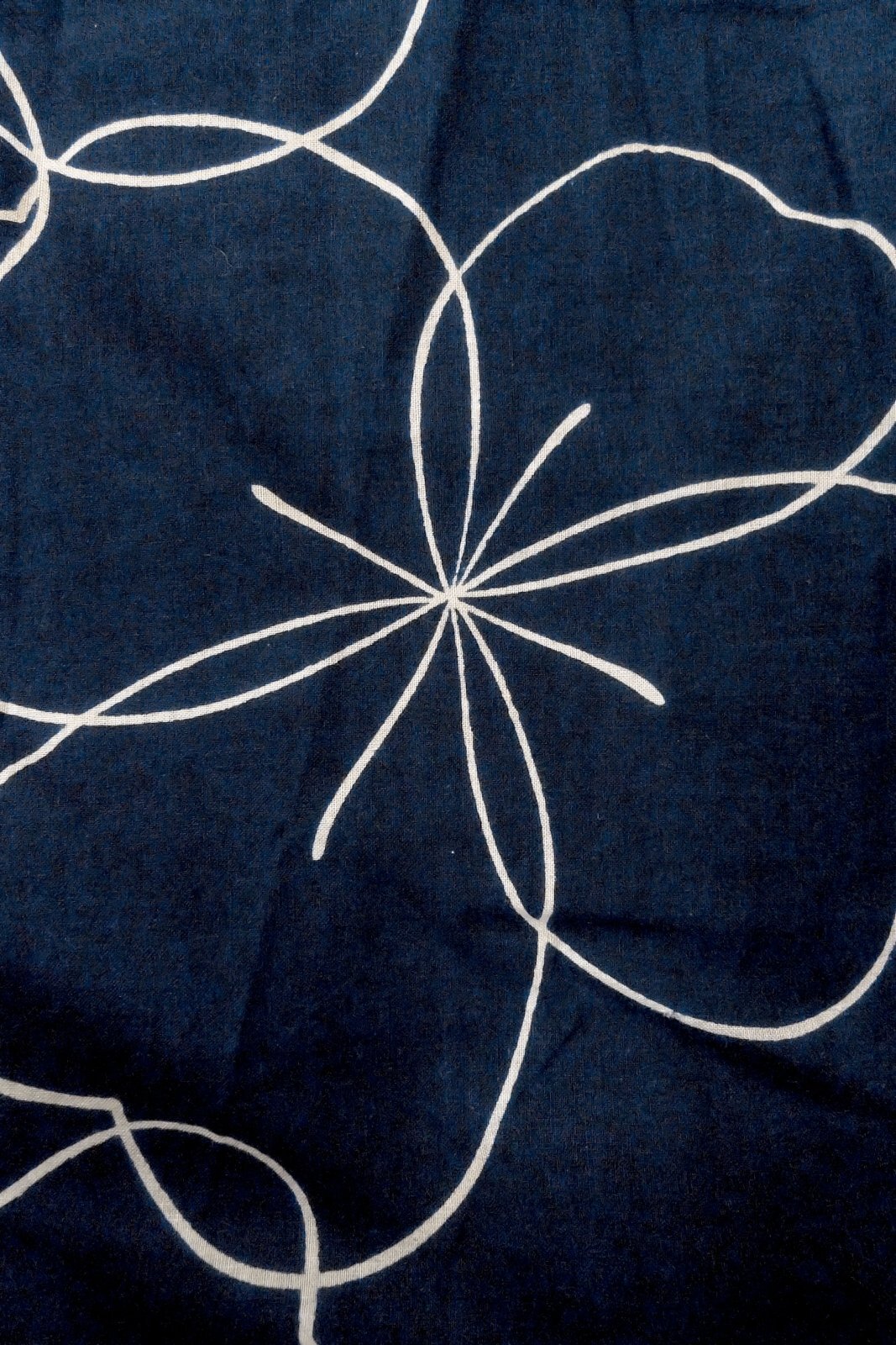 O0624U 女性用浴衣(日本製) 綿 深い藍, 花 【中古】【USED】【リサイクル】 ★★★☆☆【O0624U】 [O0624U]