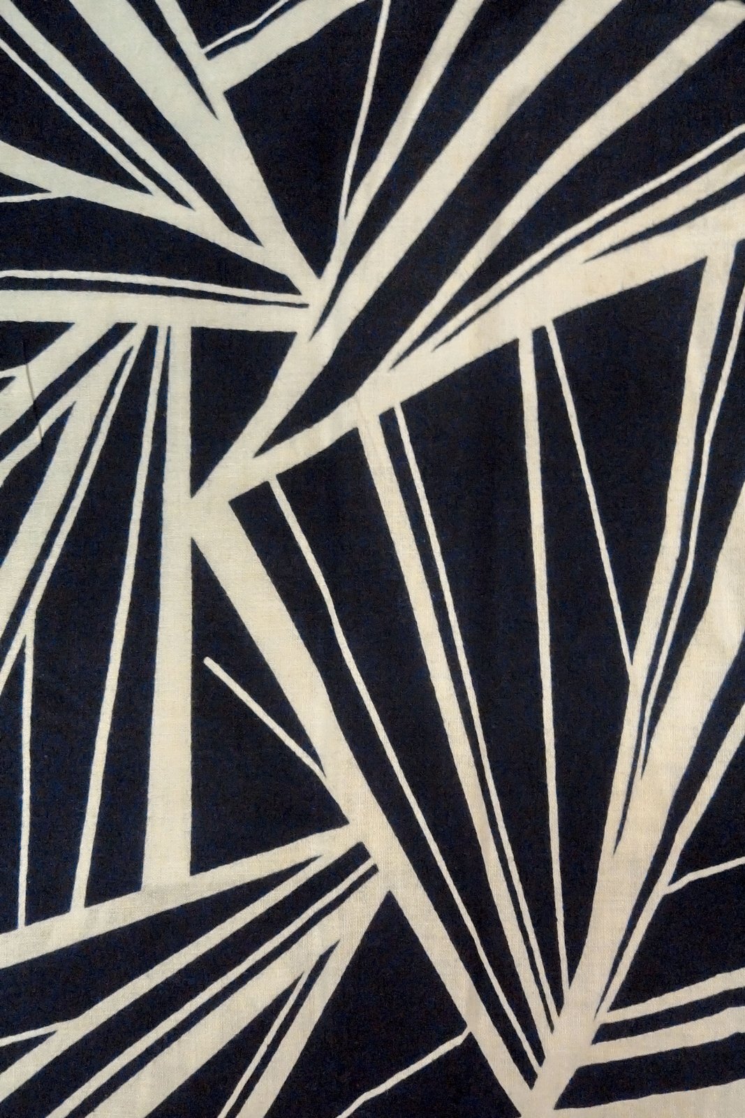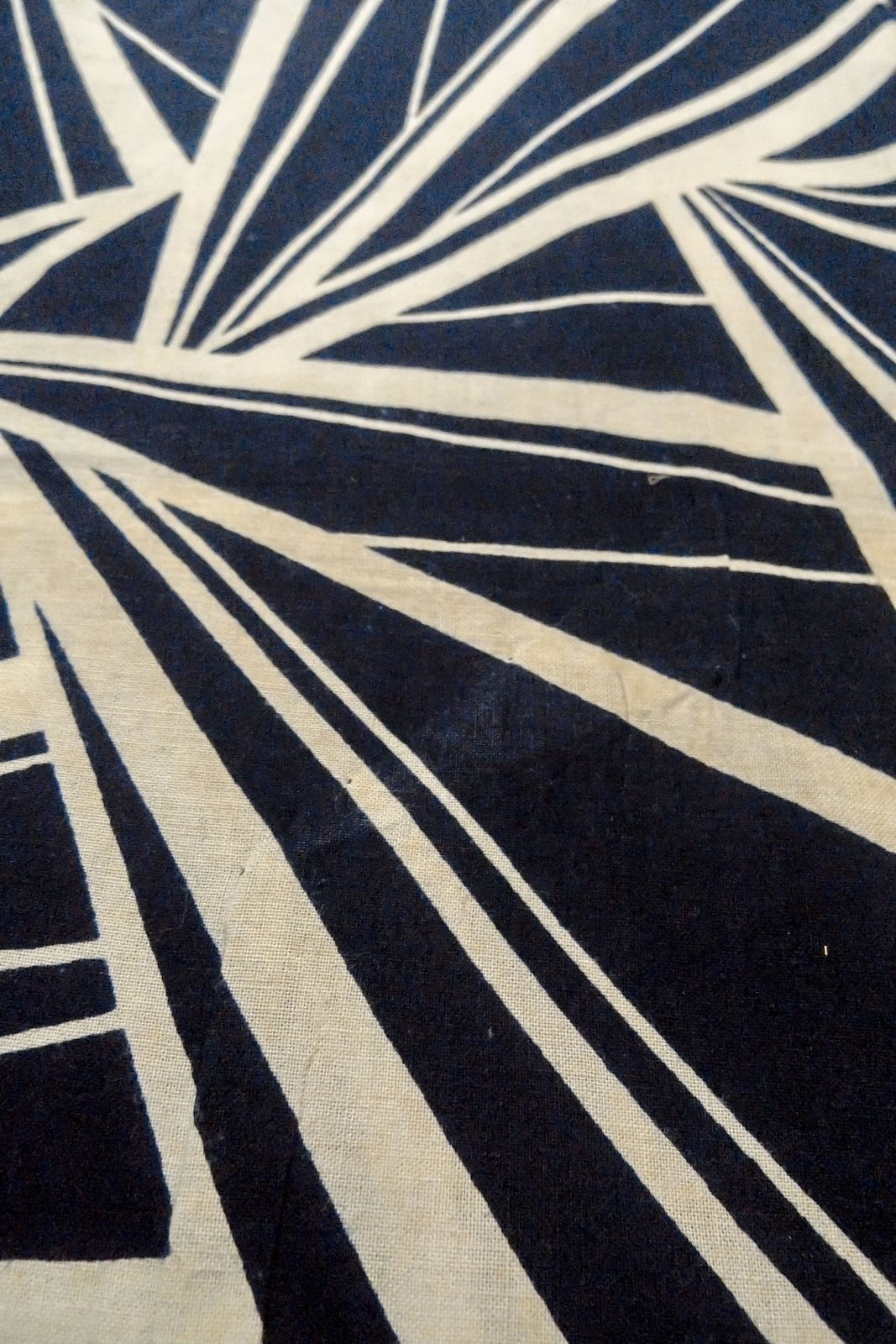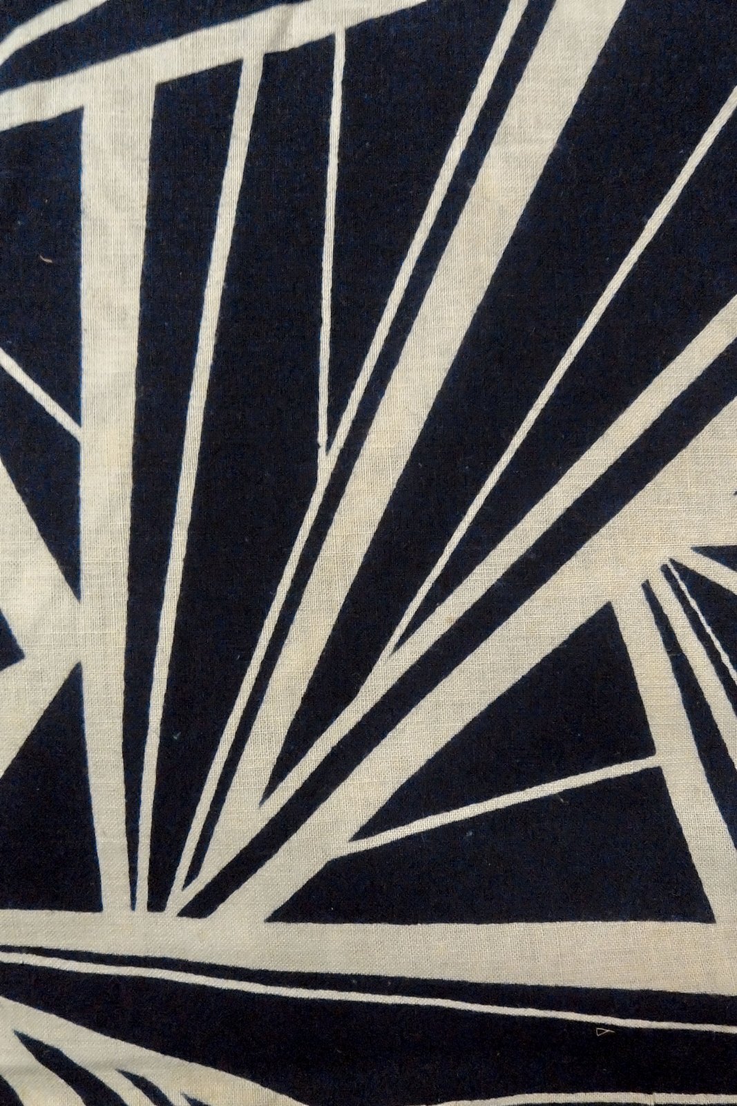 O0624W 女性用浴衣(日本製) 綿 深い藍, 幾何学模様 【中古】【USED】【リサイクル】 ★★☆☆☆【O0624W】 [O0624W]