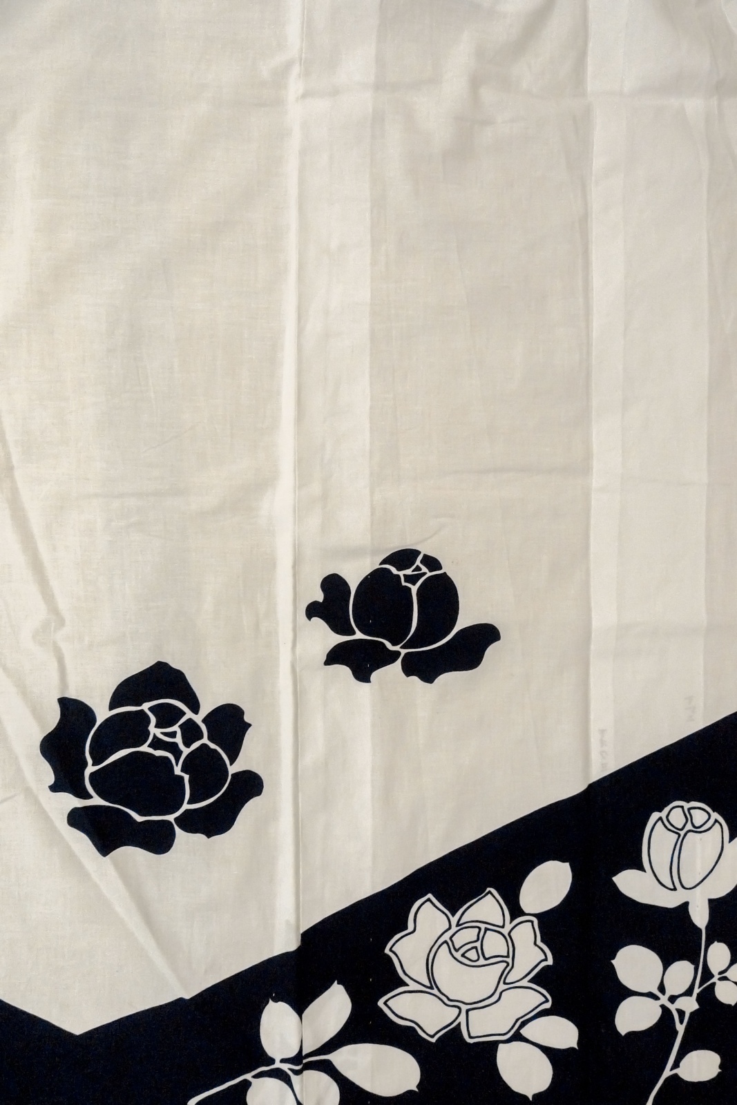 O0624X 女性用浴衣(日本製) 綿麻 白, 花 【中古】【USED】【リサイクル】 ★★☆☆☆【O0624X】 [O0624X]