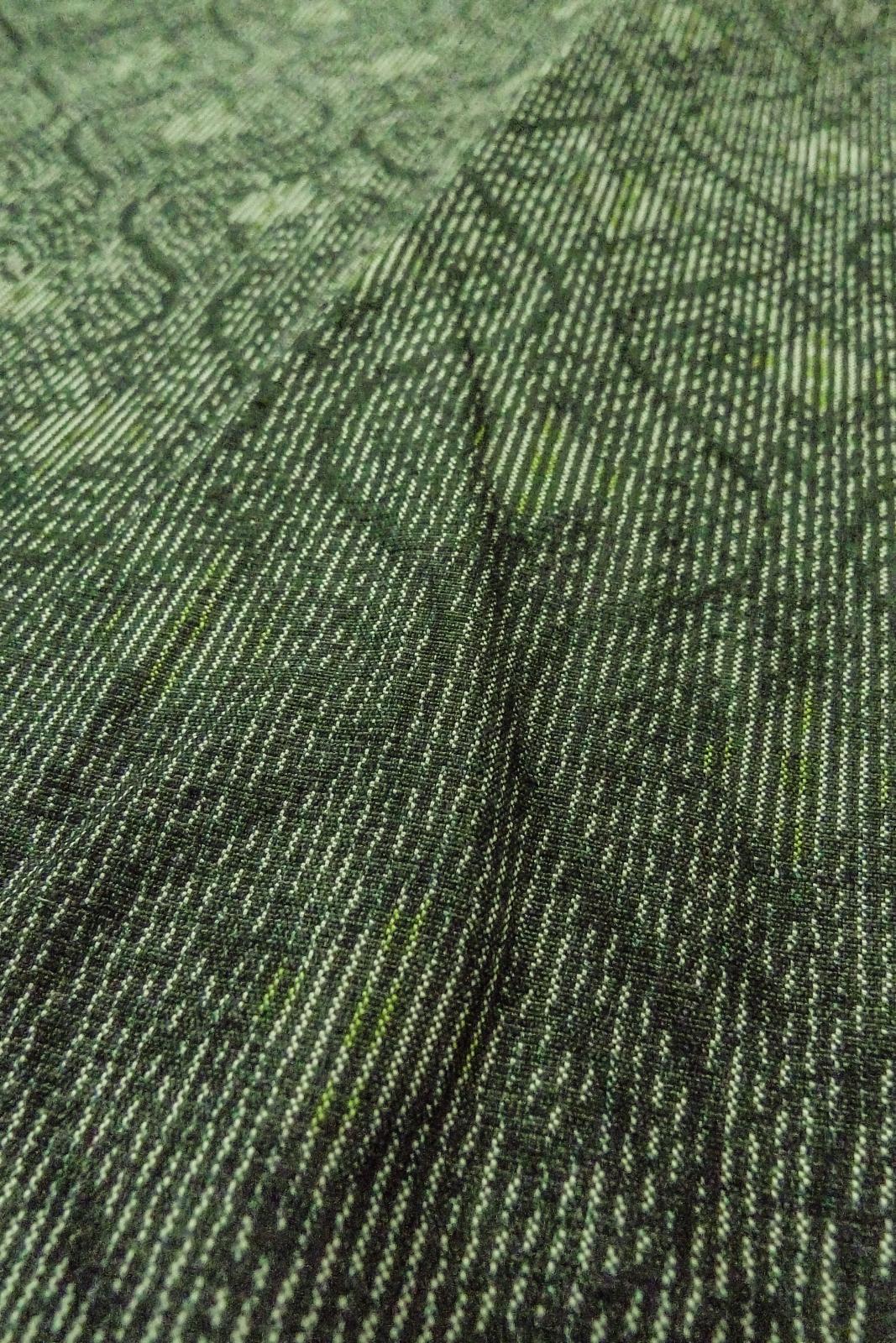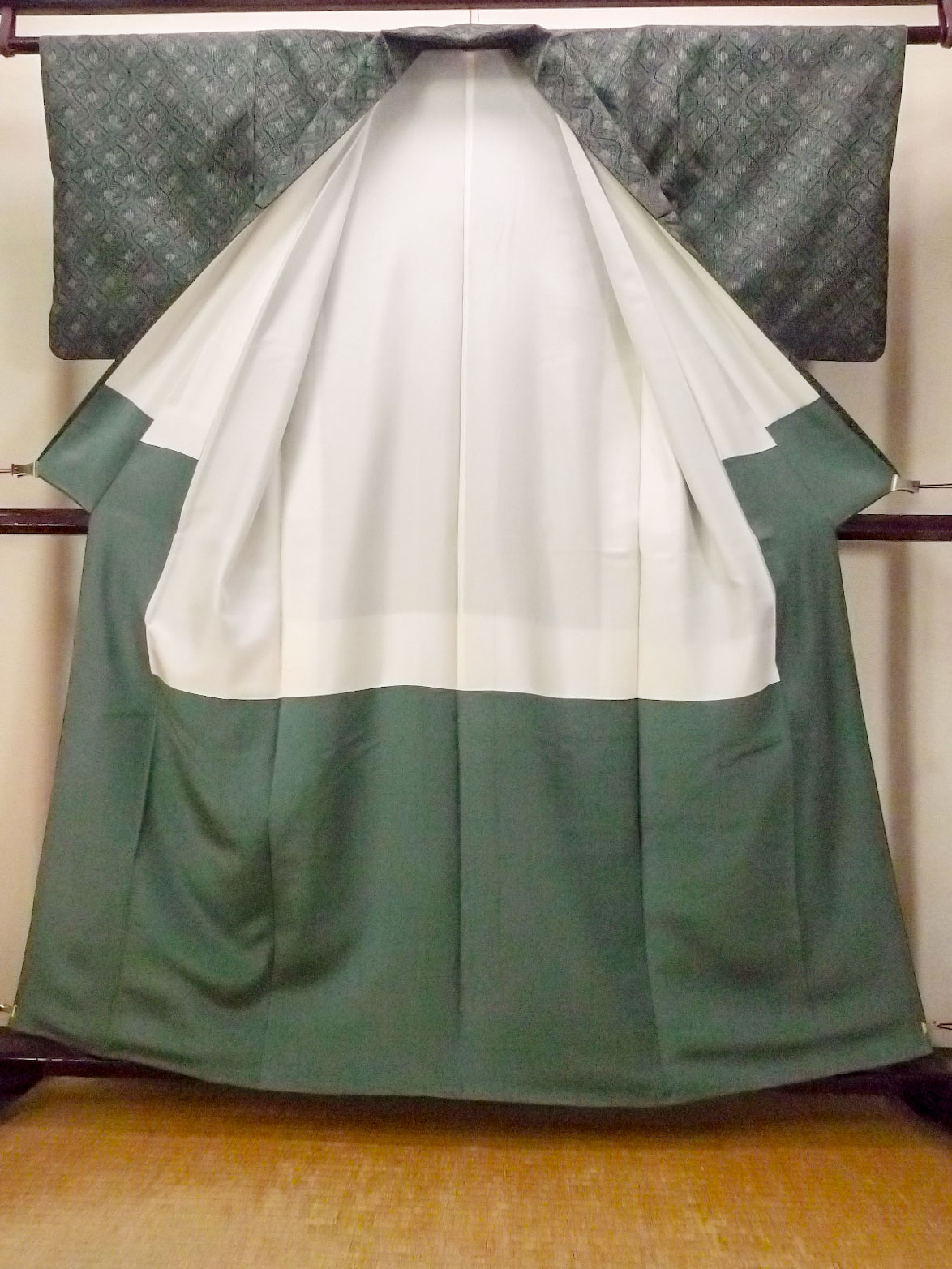 O0718A"女性用紬 シルク(正絹) 深い緑色, 立涌 【中古】【USED】【リサイクル】 ★★★☆☆【O0718A】