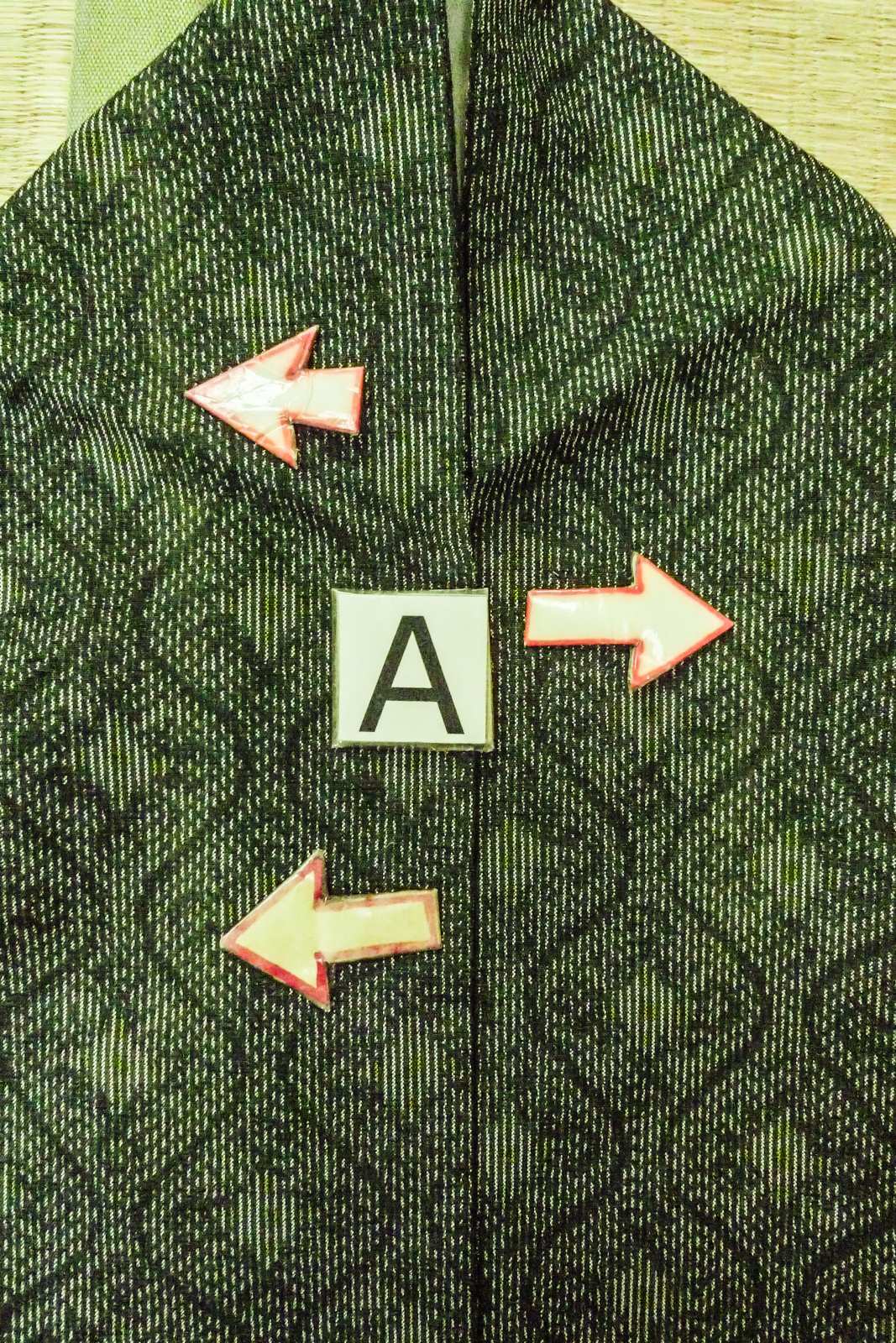 O0718A 女性用紬 シルク(正絹) 深い緑色, 立涌 【中古】【USED】【リサイクル】 ★★★☆☆【O0718A】 [O0718A]