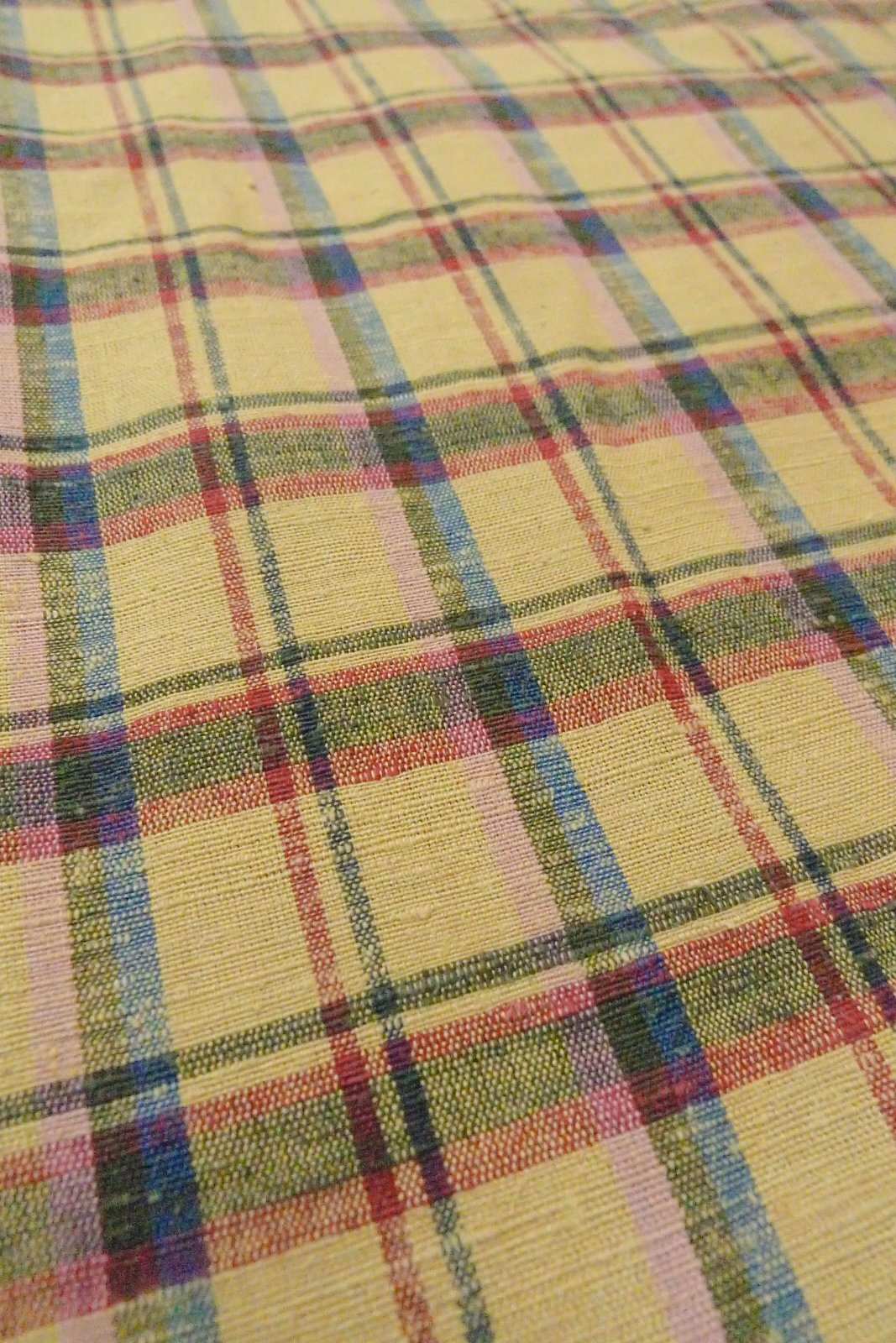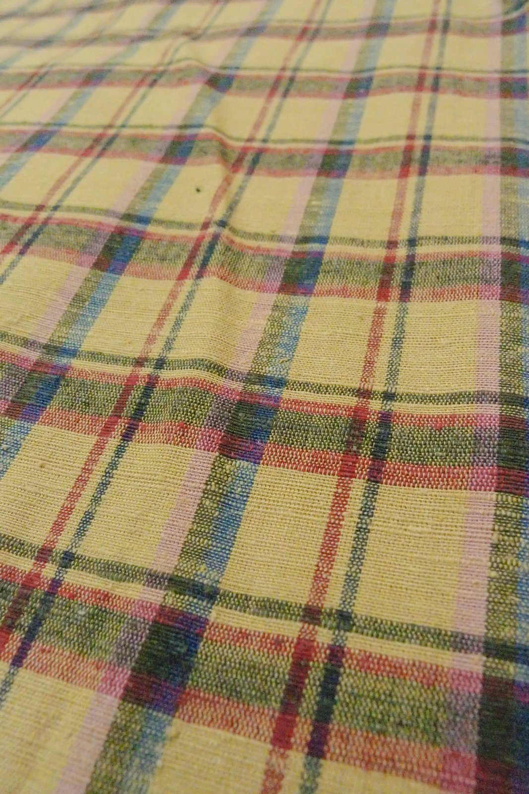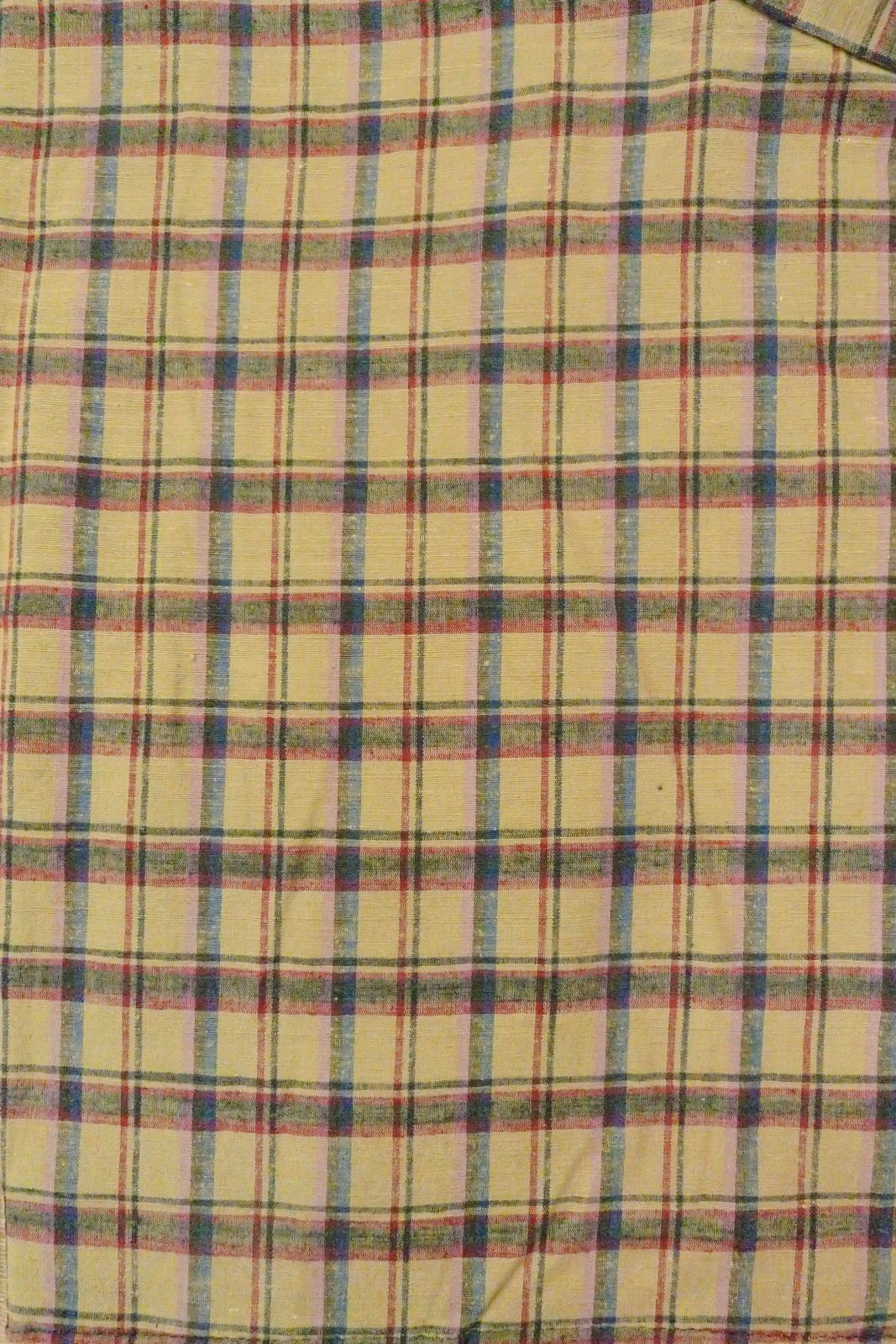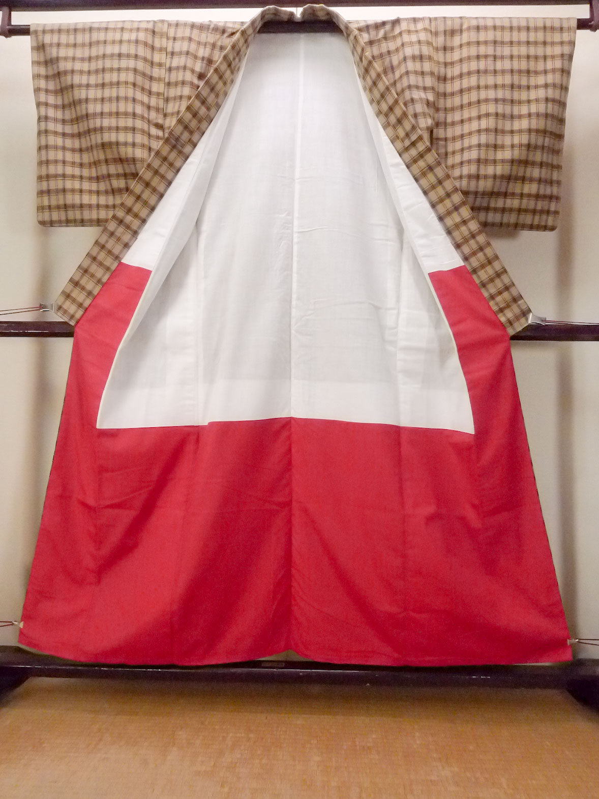 O0718B 女性用紬 シルク(正絹) ベージュ, チェック柄 【中古】【USED】【リサイクル】 ★☆☆☆☆【O0718B】 [O0718B]