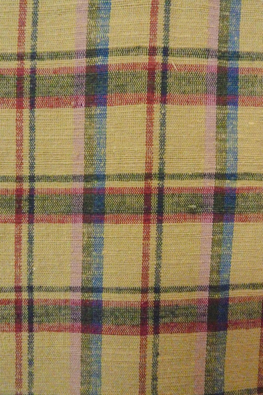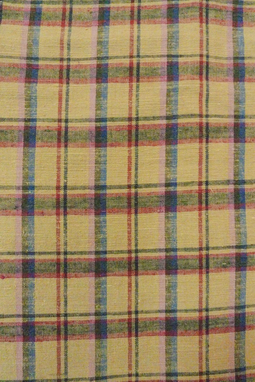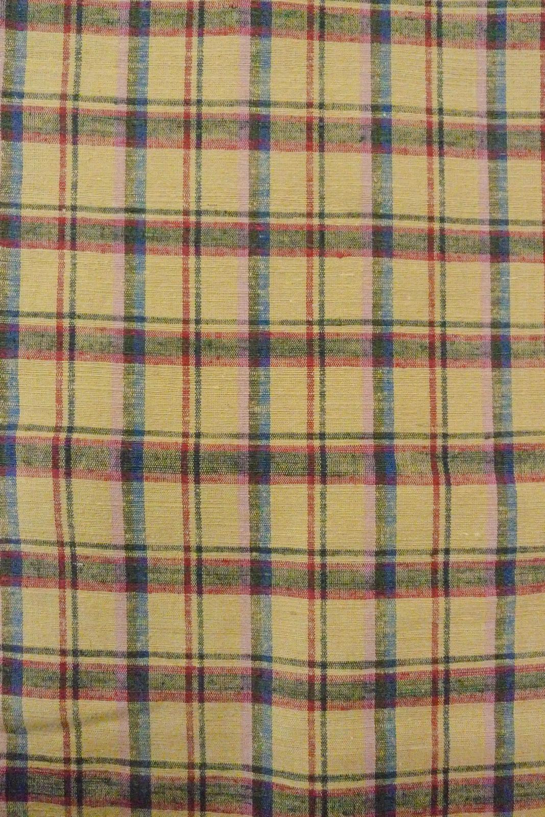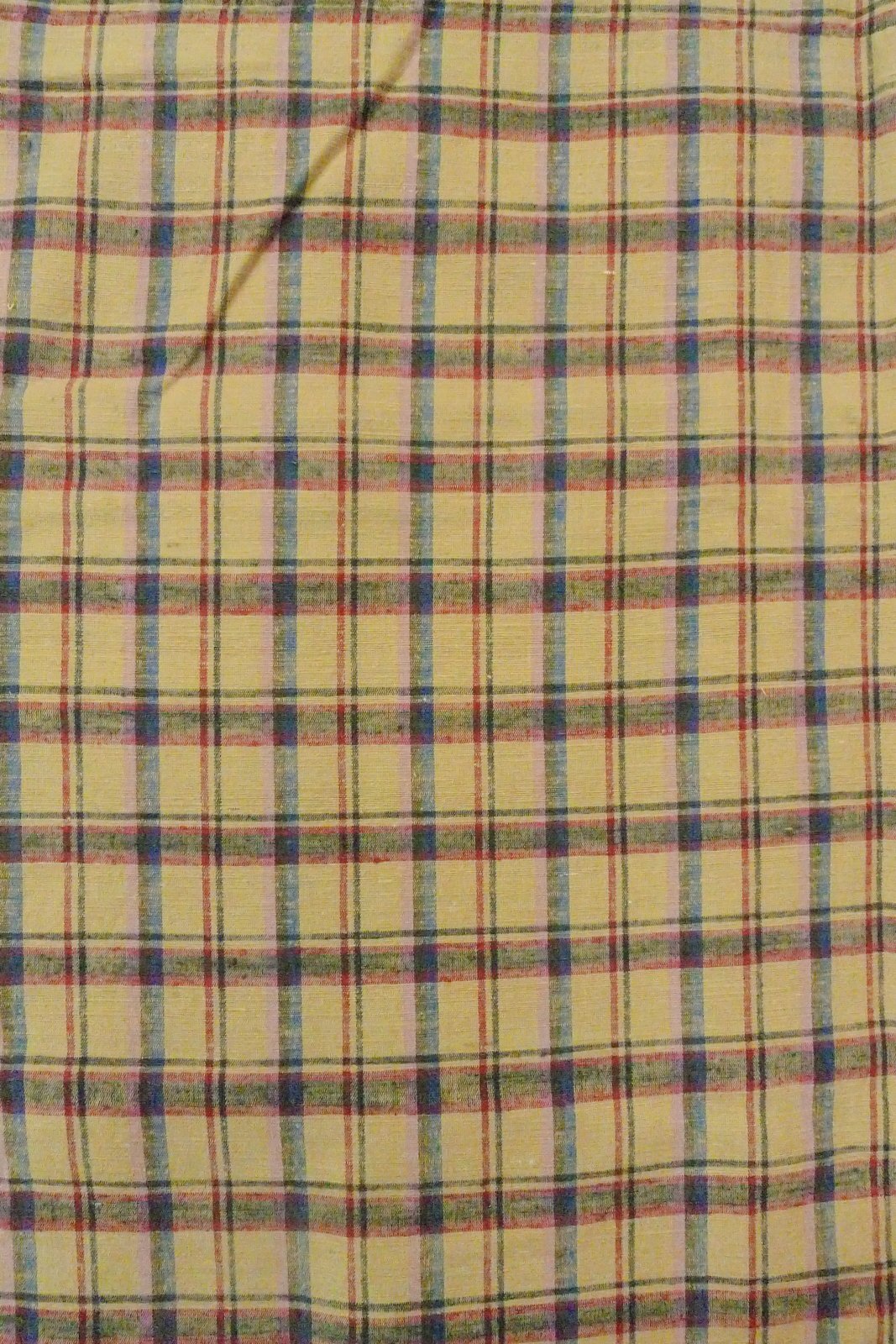O0718B 女性用紬 シルク(正絹) ベージュ, チェック柄 【中古】【USED】【リサイクル】 ★☆☆☆☆【O0718B】 [O0718B]
