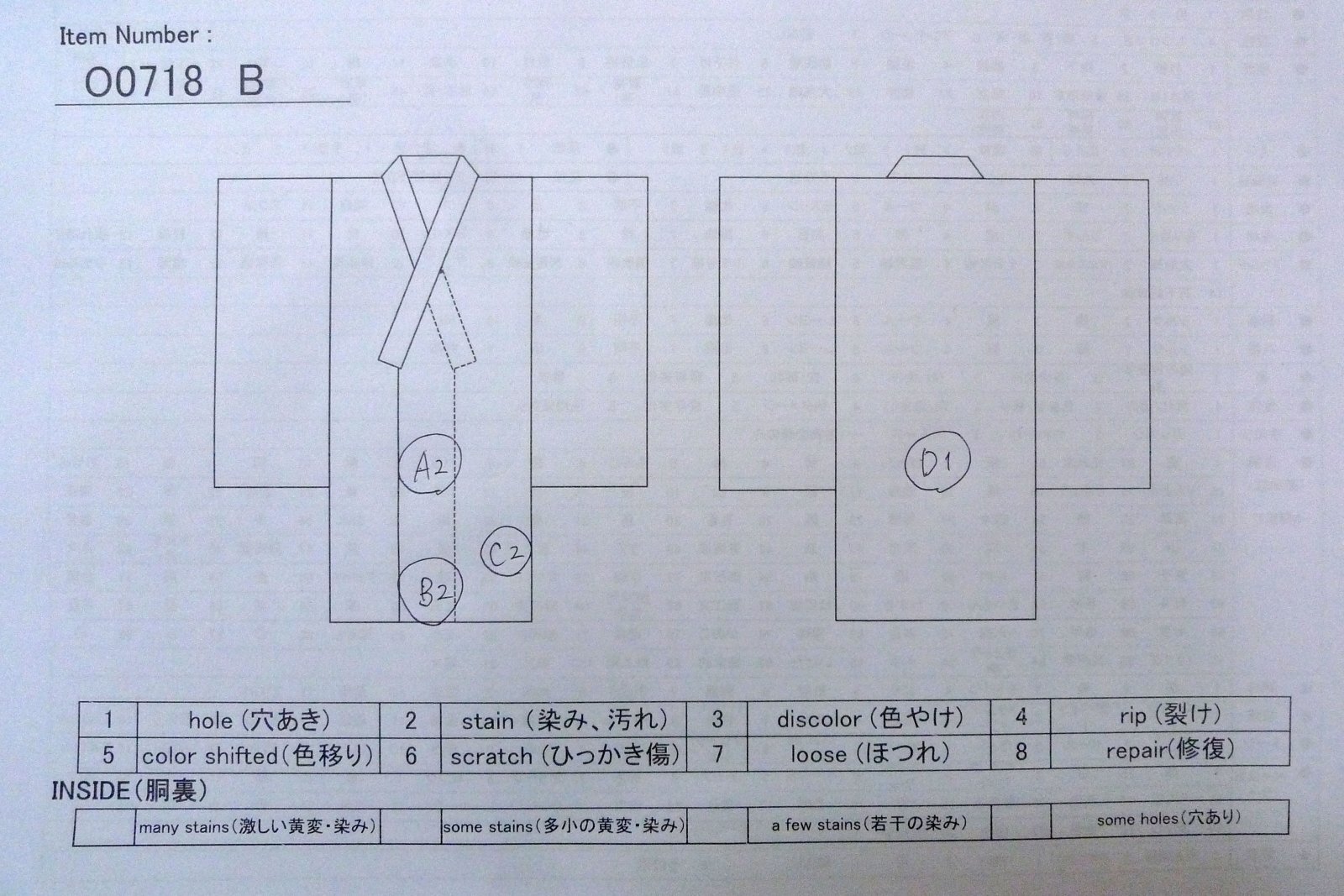 ![]() | 袖から袖 : | 50.7" | 129cm (裄:64.5cm / ) | |