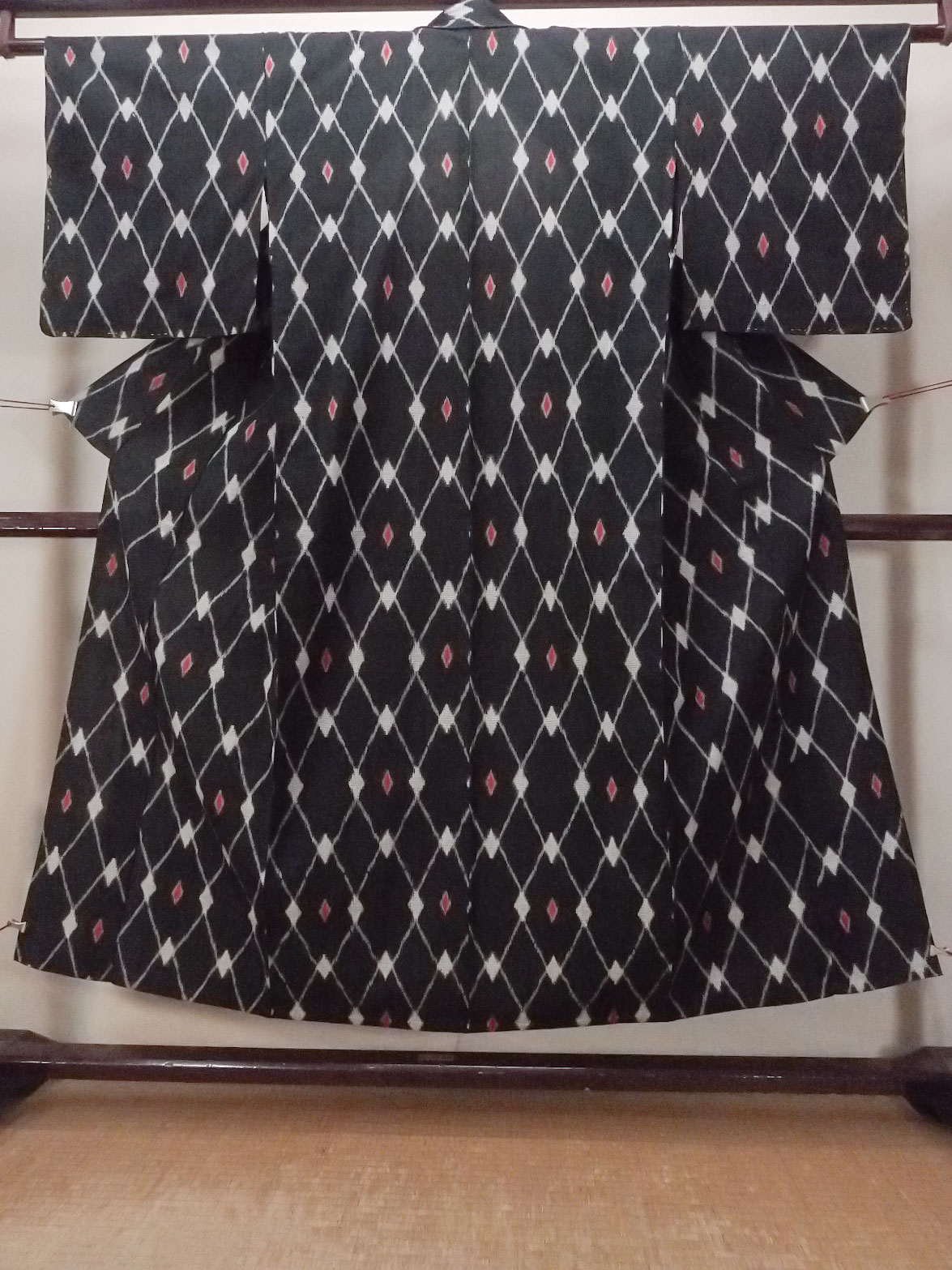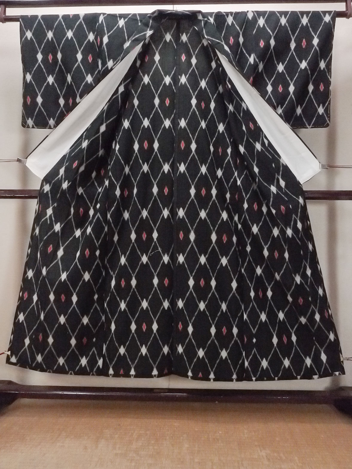 O0718F"女性用織 シルク(正絹) 黒, 菱 【中古】【USED】【リサイクル】 ★★★☆☆【O0718F】