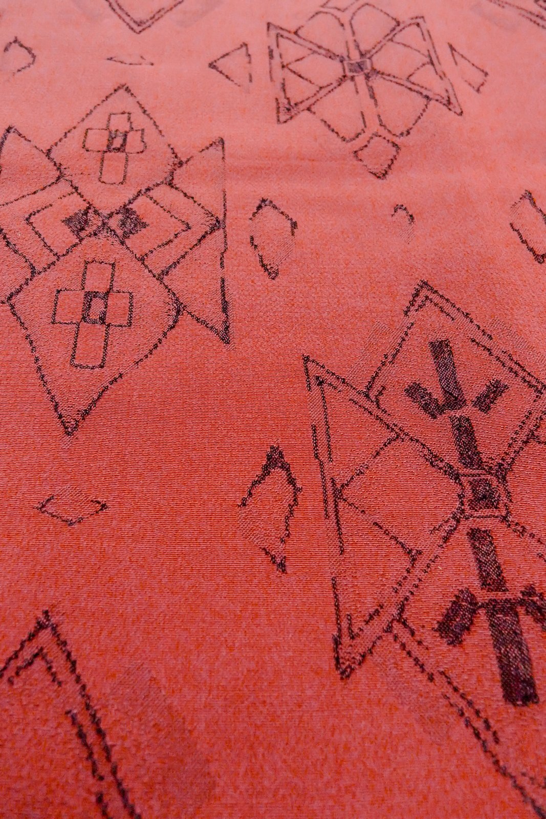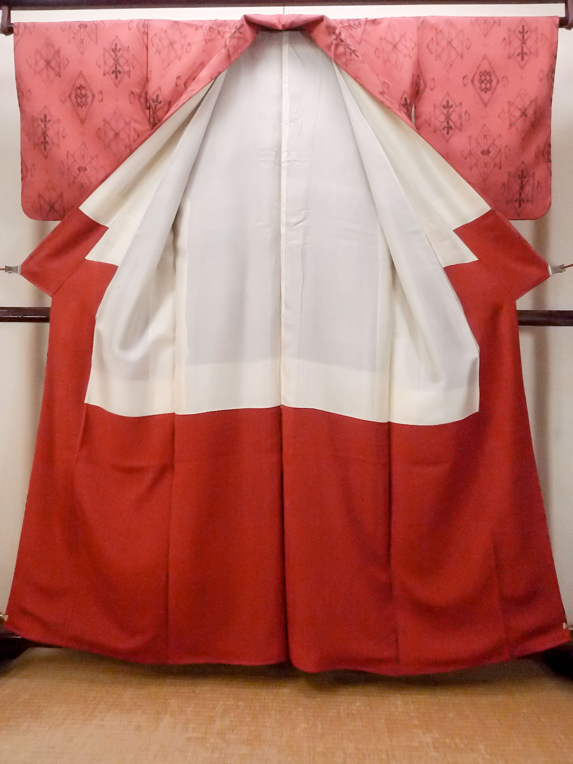O0718K"女性用織 シルク(正絹) 赤色, 菱 【中古】【USED】【リサイクル】 ★★★★☆【O0718K】