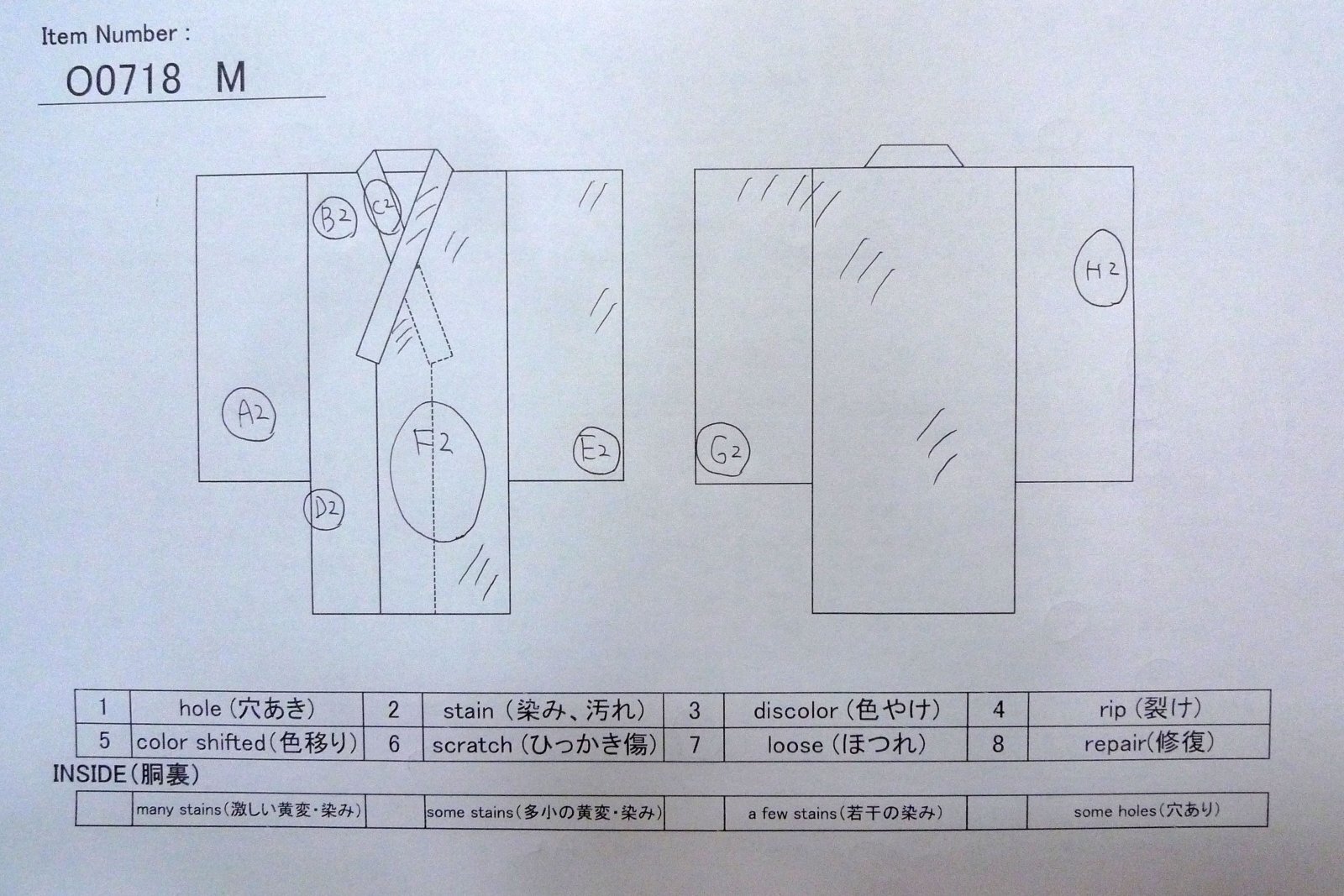 こちらの商品は中古の古着になります。シミ・傷等の写真はあくまでもご参考程度にお願いします。写真に写っていないダメージがありましても、「中古品」「難あり」「訳あり」ということをご了解の上、ノークレームでご購入下さいませ。