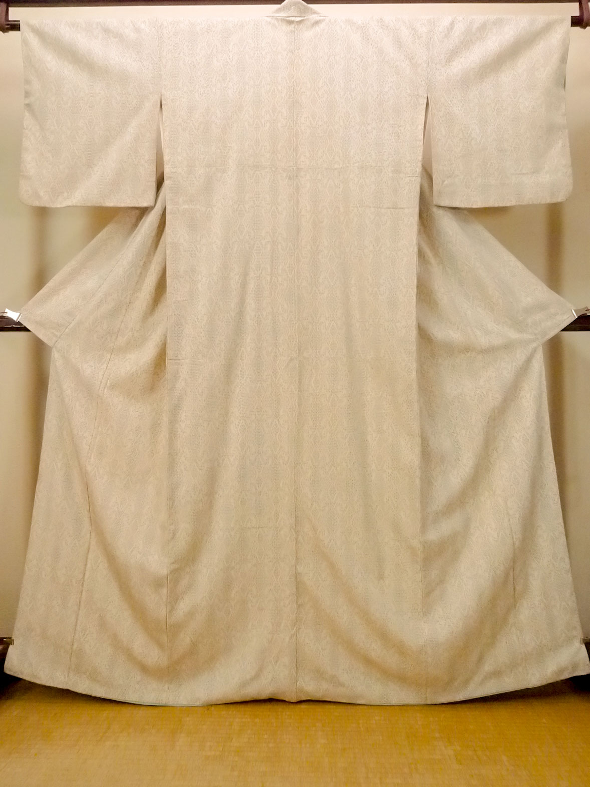 O0718S"女性用織 シルク(正絹) アイボリー, 菱 【中古】【USED】【リサイクル】 ★★★☆☆【O0718S】