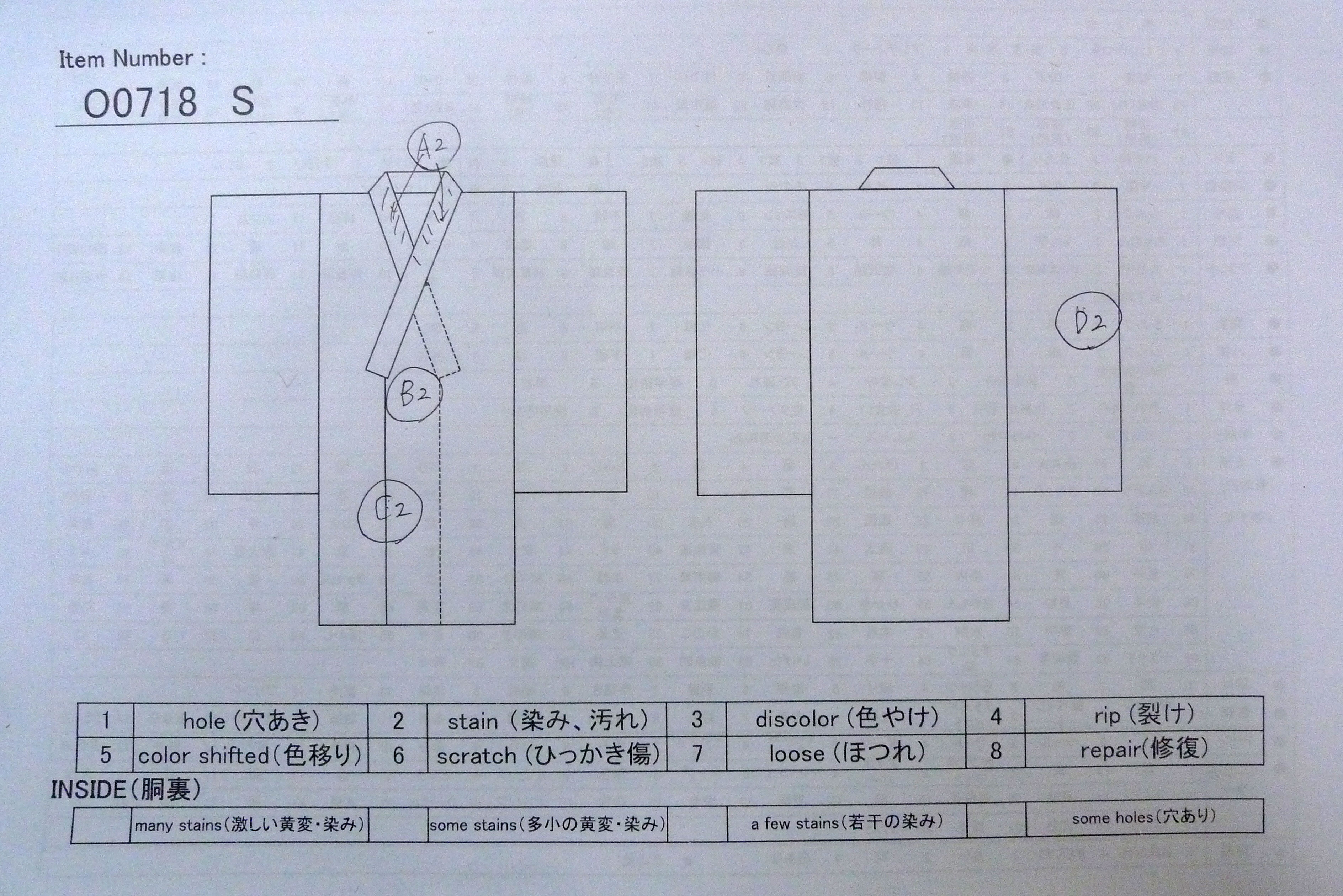 |  | 袖から袖 : | 52.3" | 133cm (裄:66.5cm / ) | |