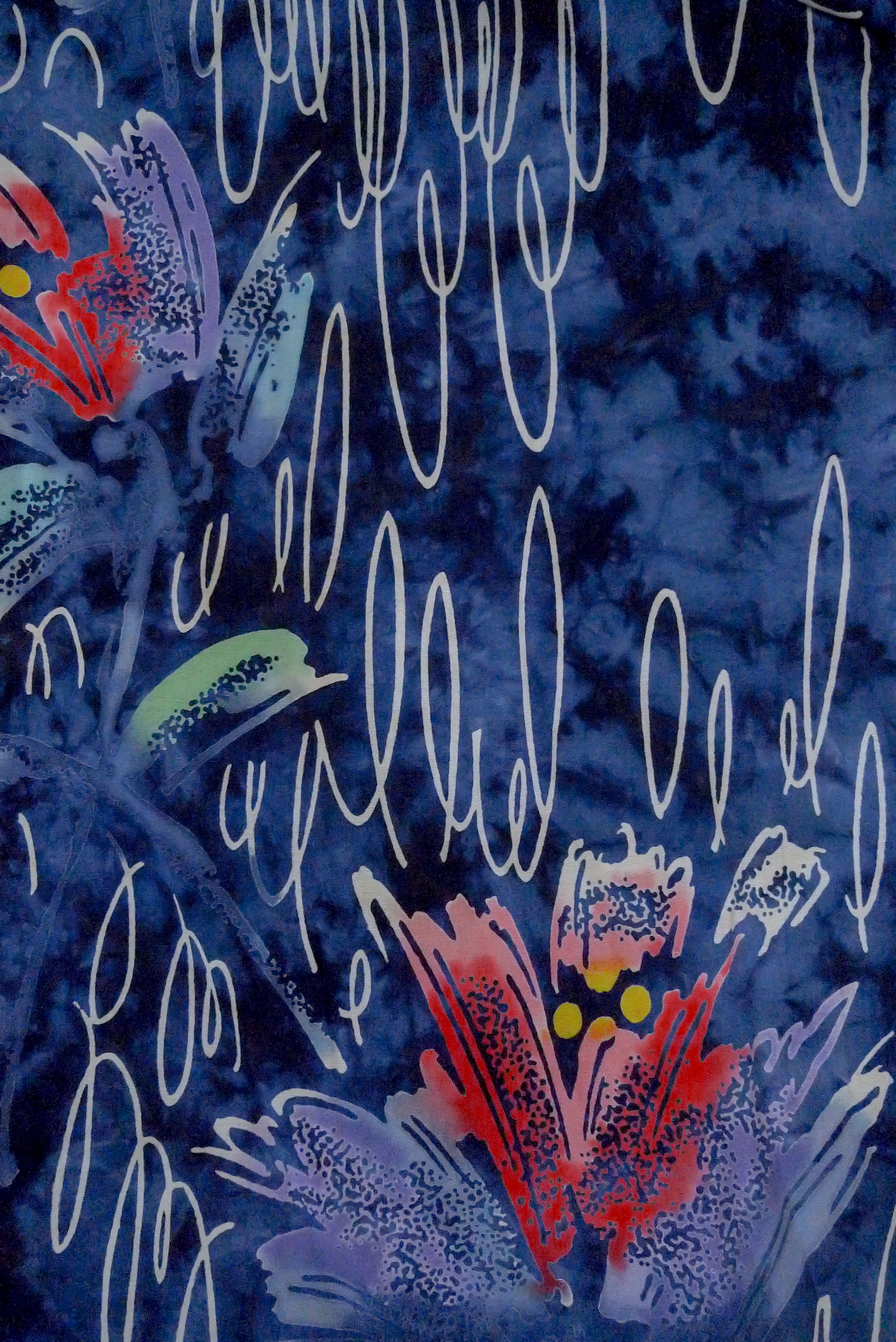 O0718T 女性用注染浴衣 綿 藍, 花 【中古】【USED】【リサイクル】 ★★★☆☆【O0718T】 [O0718T]