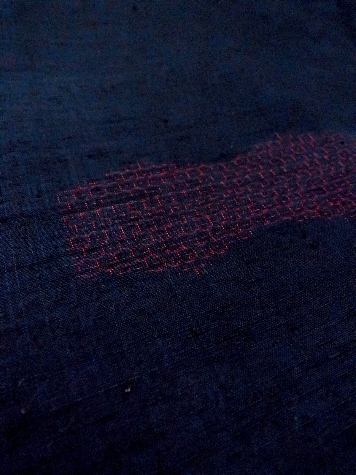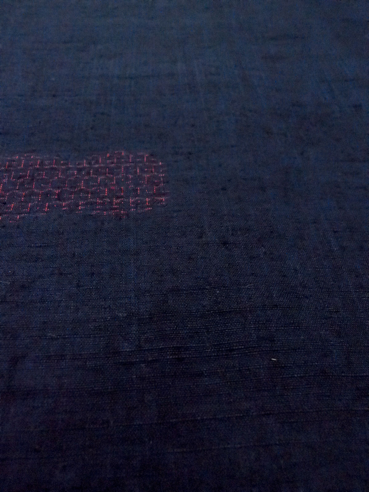 N1015B"女性用紬 石下結城紬 シルク(正絹) 紺, 亀甲 【中古】【USED】【リサイクル】 ★★★☆☆【N1015B】