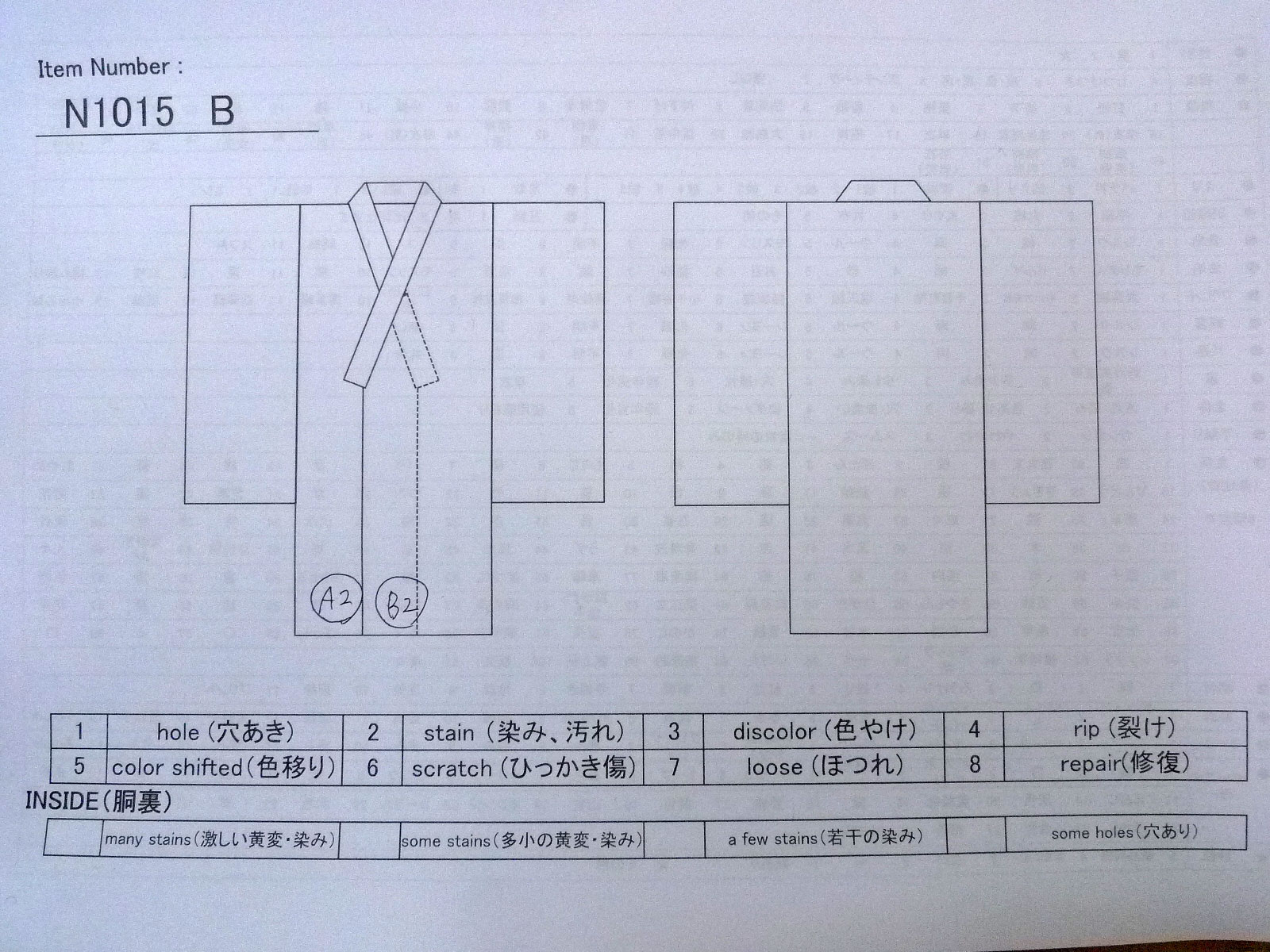 ![]() | 袖から袖 : | 50.3" | 128cm (裄:64cm / ) | |