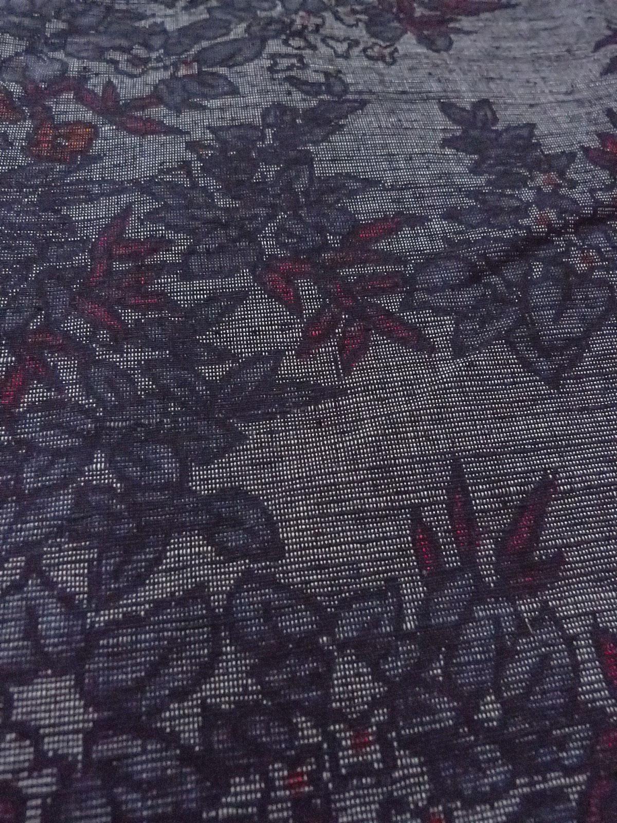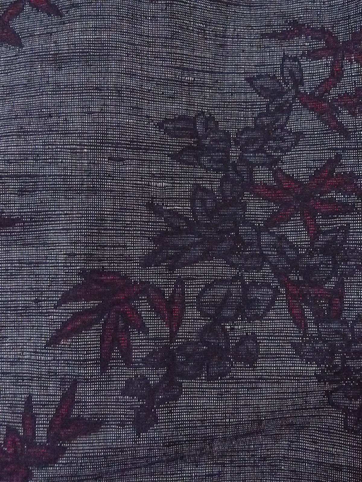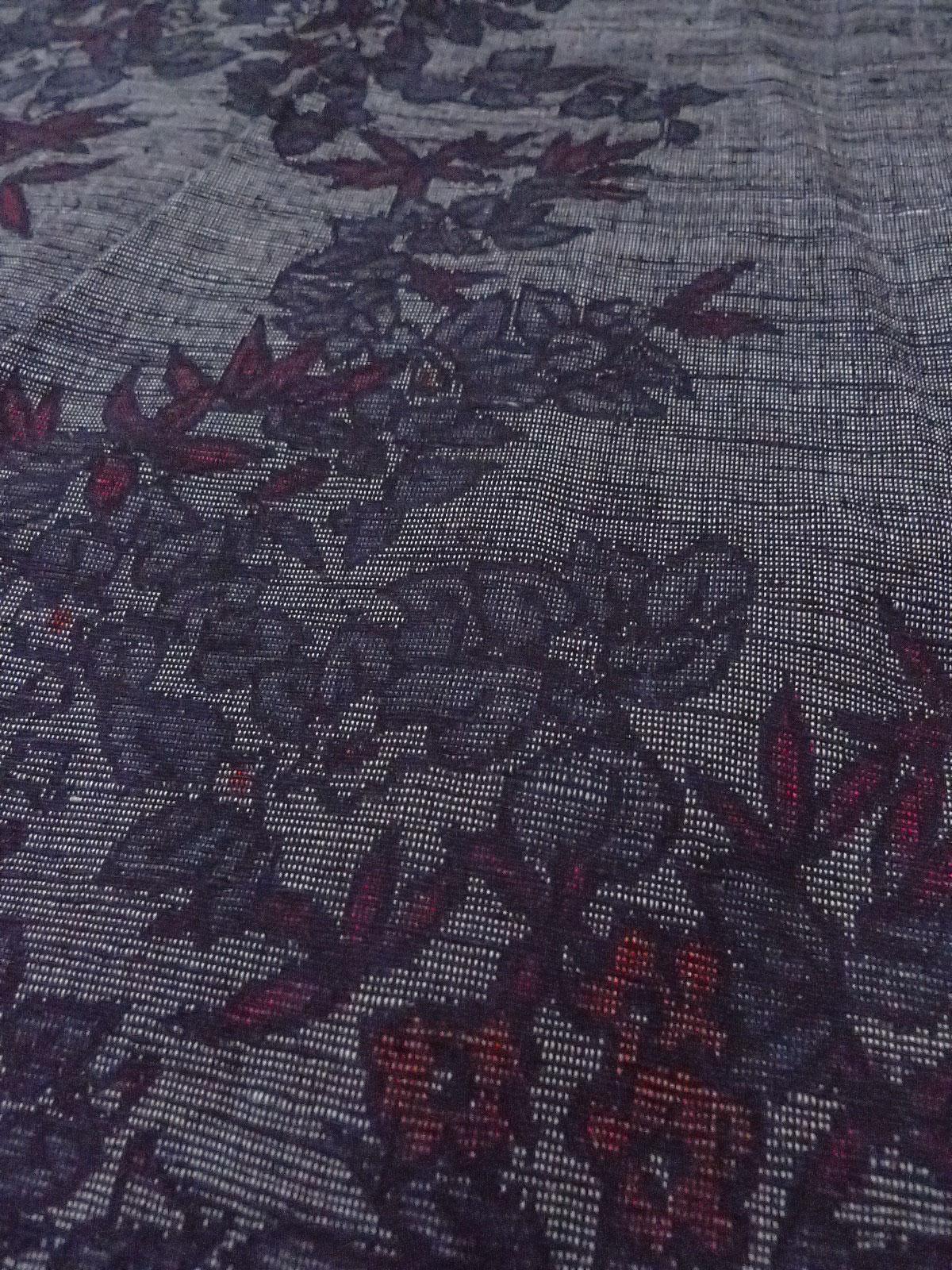N1015C 女性用紬 シルク(正絹) 深い灰色, 花 【中古】【USED】【リサイクル】 ★★★☆☆【N1015C】 [N1015C]
