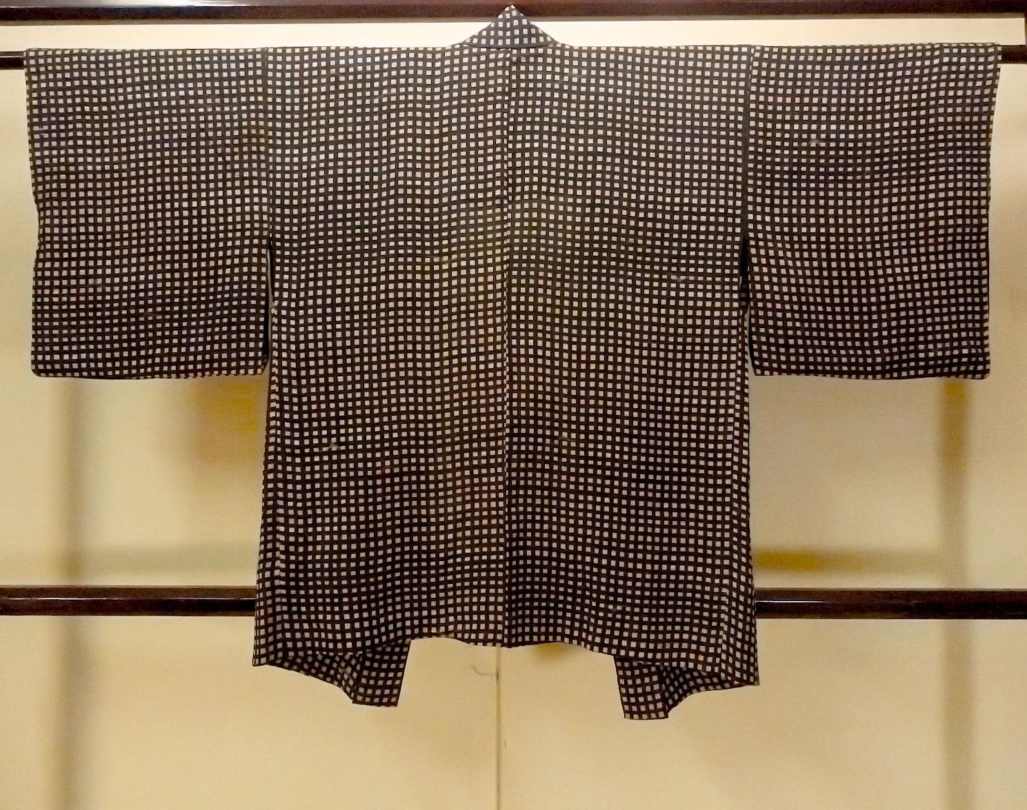 O0805G 女性用羽織 シルク(正絹) 黒, チェック柄 【中古】【USED】【リサイクル】 ★★☆☆☆【O0805G】 [O0805G]