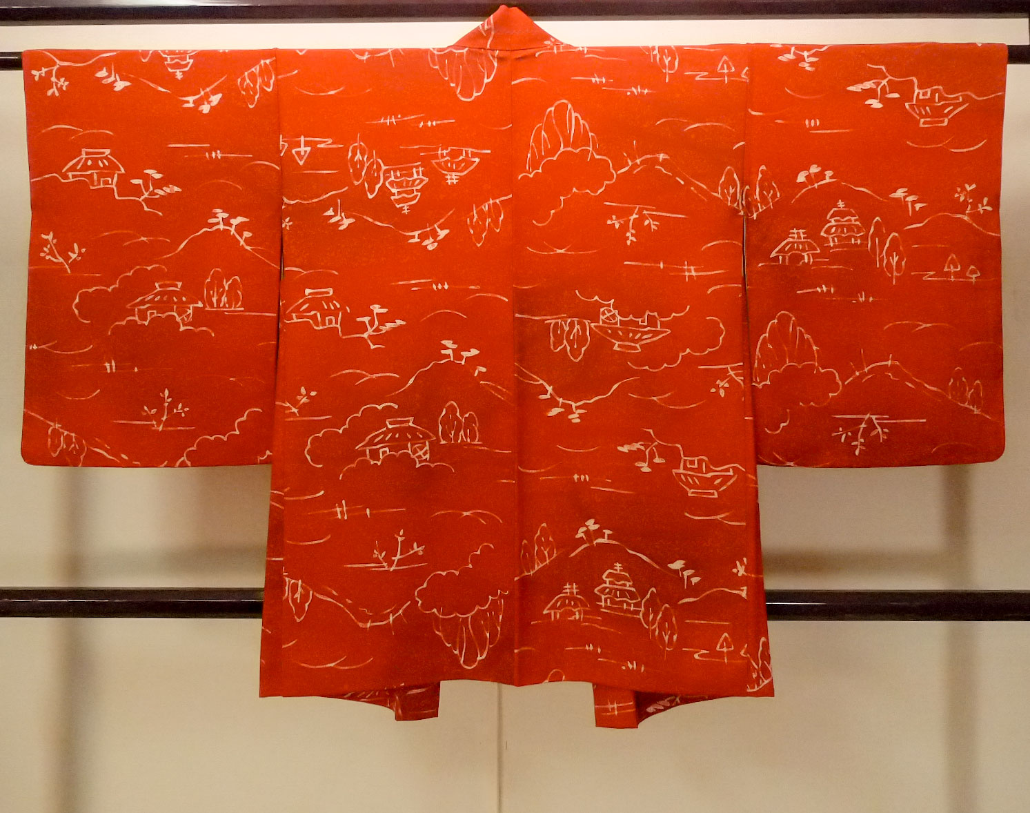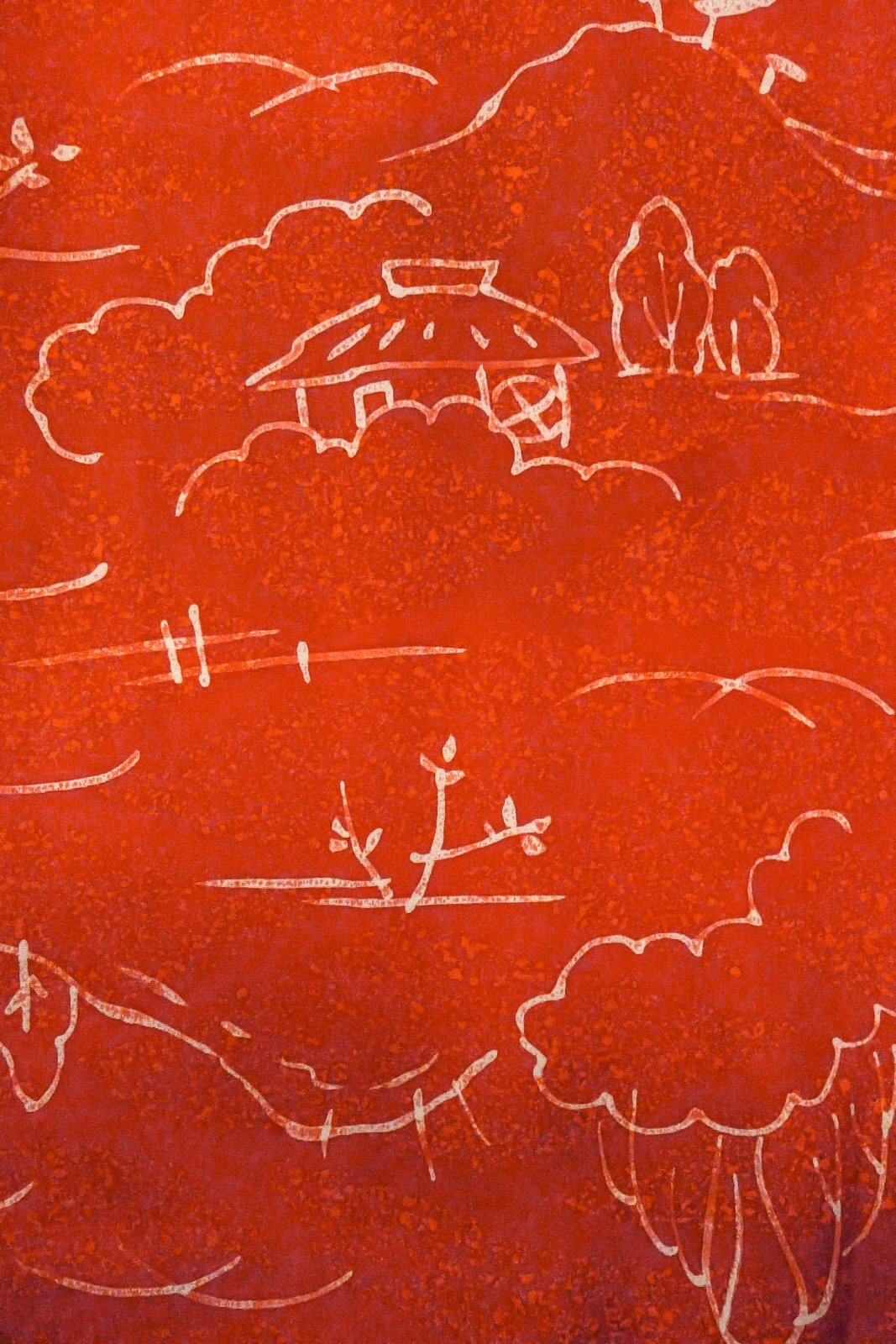 O0805H 女性用羽織 シルク(正絹) 朱赤, 家 【中古】【USED】【リサイクル】 ★★★★☆【O0805H】 [O0805H]