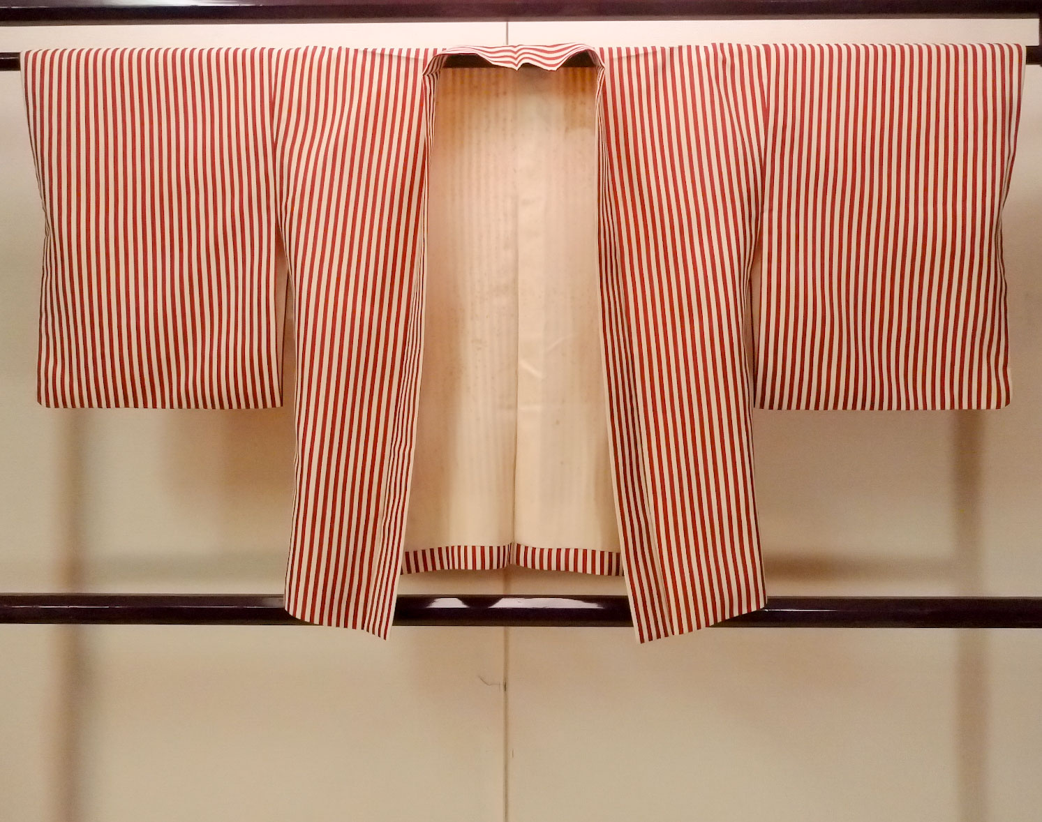 O0805K 女性用羽織 シルク(正絹) オフ ホワイト, 縞 【中古】【USED】【リサイクル】 ★☆☆☆☆【O0805K】 [O0805K]