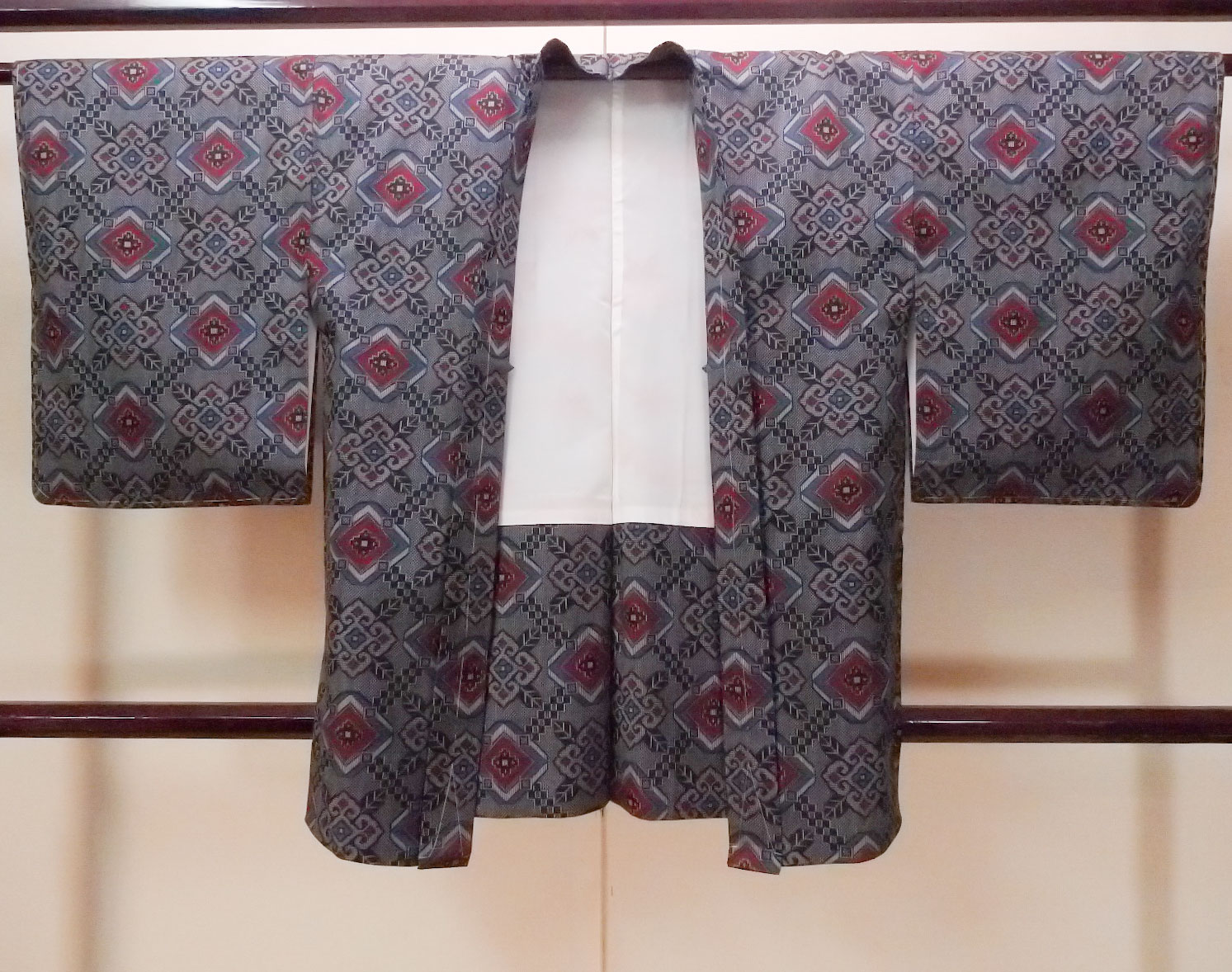 O0805P"女性用羽織 シルク(正絹) 灰色, 花 【中古】【USED】【リサイクル】 ★★★★☆【O0805P】