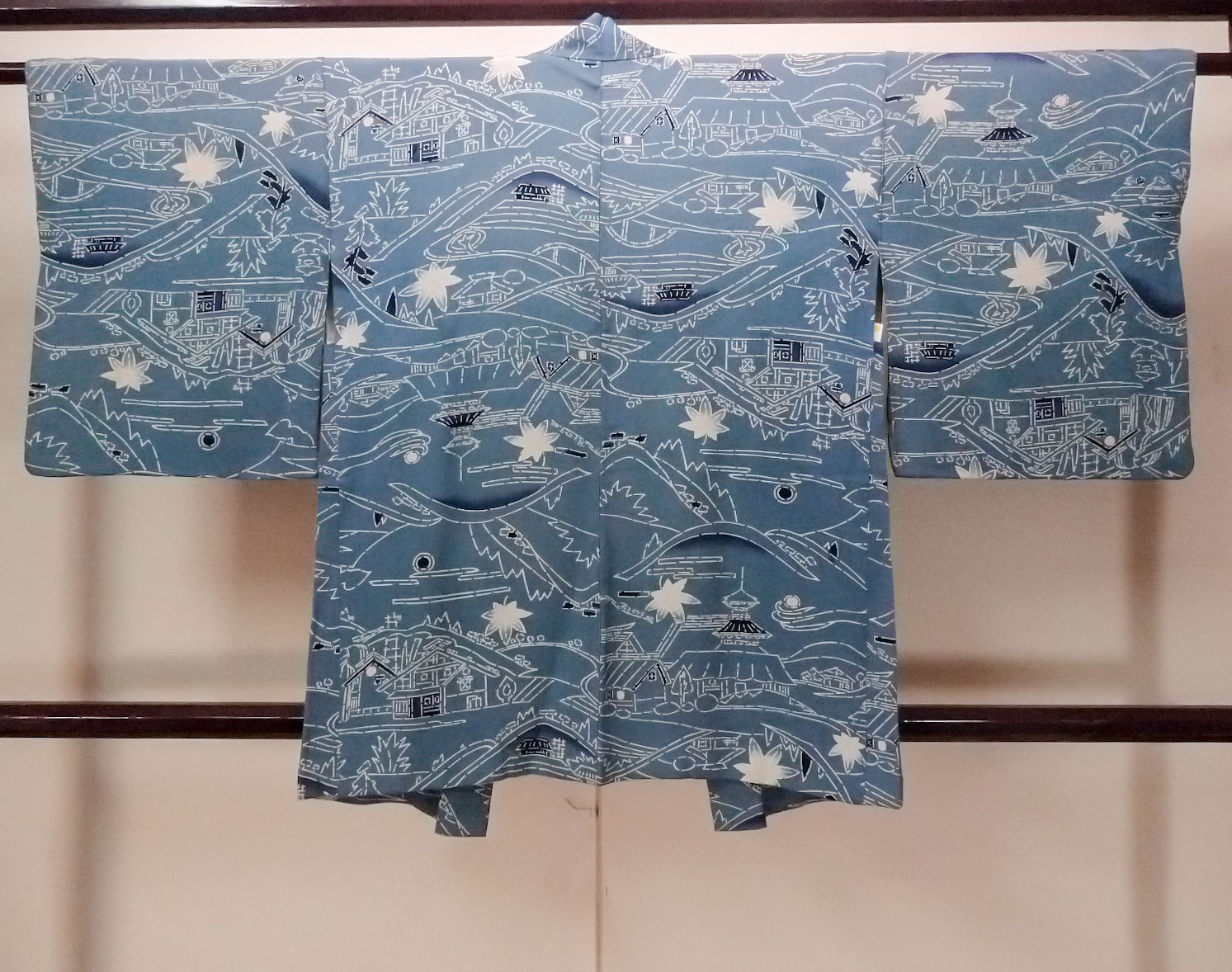 O0805S"女性用羽織 シルク(正絹) 灰色がかった青, もみじ 【中古】【USED】【リサイクル】 ★★☆☆☆【O0805S】