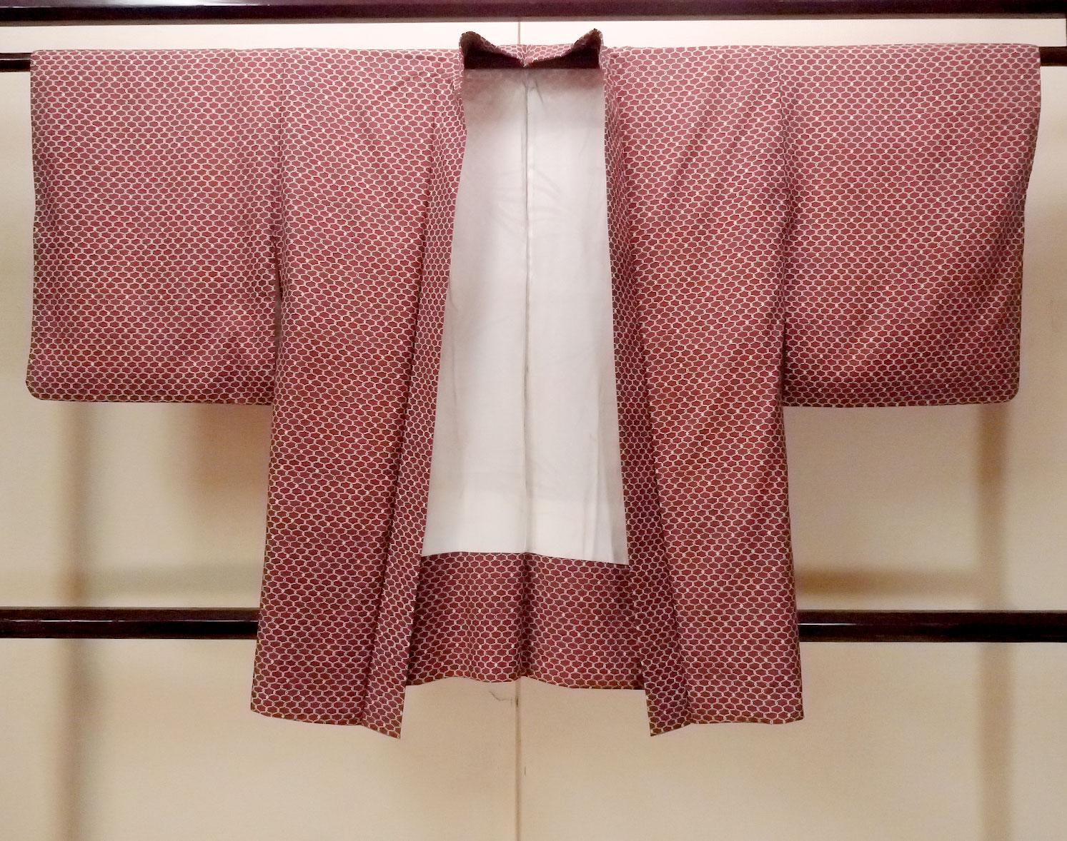 O0805V"女性用羽織 化繊 深いえんじ, 幾何学模様 【中古】【USED】【リサイクル】 ★★★☆☆【O0805V】