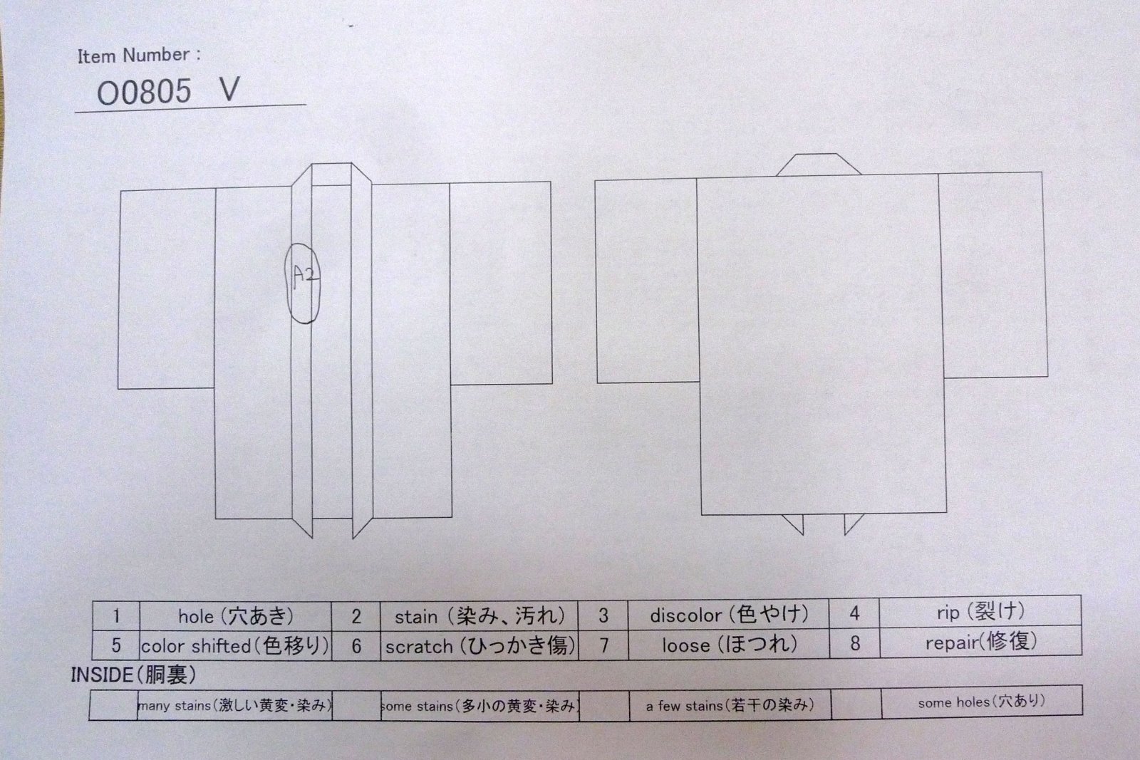 ![]() | 袖から袖 : | 50.3" | 128cm (裄:64cm / ) | |