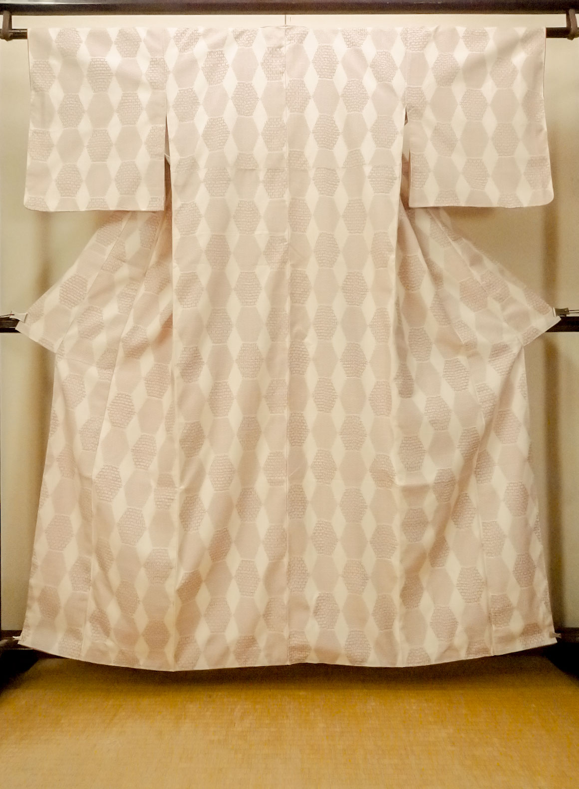 O0711B"女性用紬 シルク(正絹) オフ ホワイト, 幾何学模様 【中古】【USED】【リサイクル】 ★★★☆☆【O0711B】